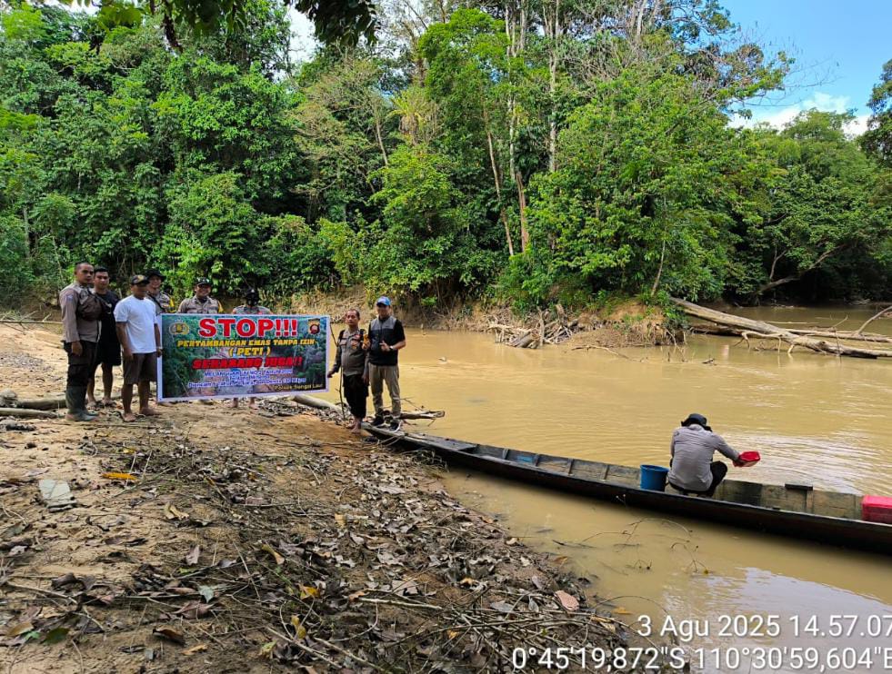 Terpantau di lapangan masih ada pekerja yang melakukan kegiatan PETI dengan ponton Jek di sungai Laur wilayah hulu desa teluk mutiara kecamatan sungai laur kabupaten Ketapang Kalimantan Barat pada 3 Agustus 2025