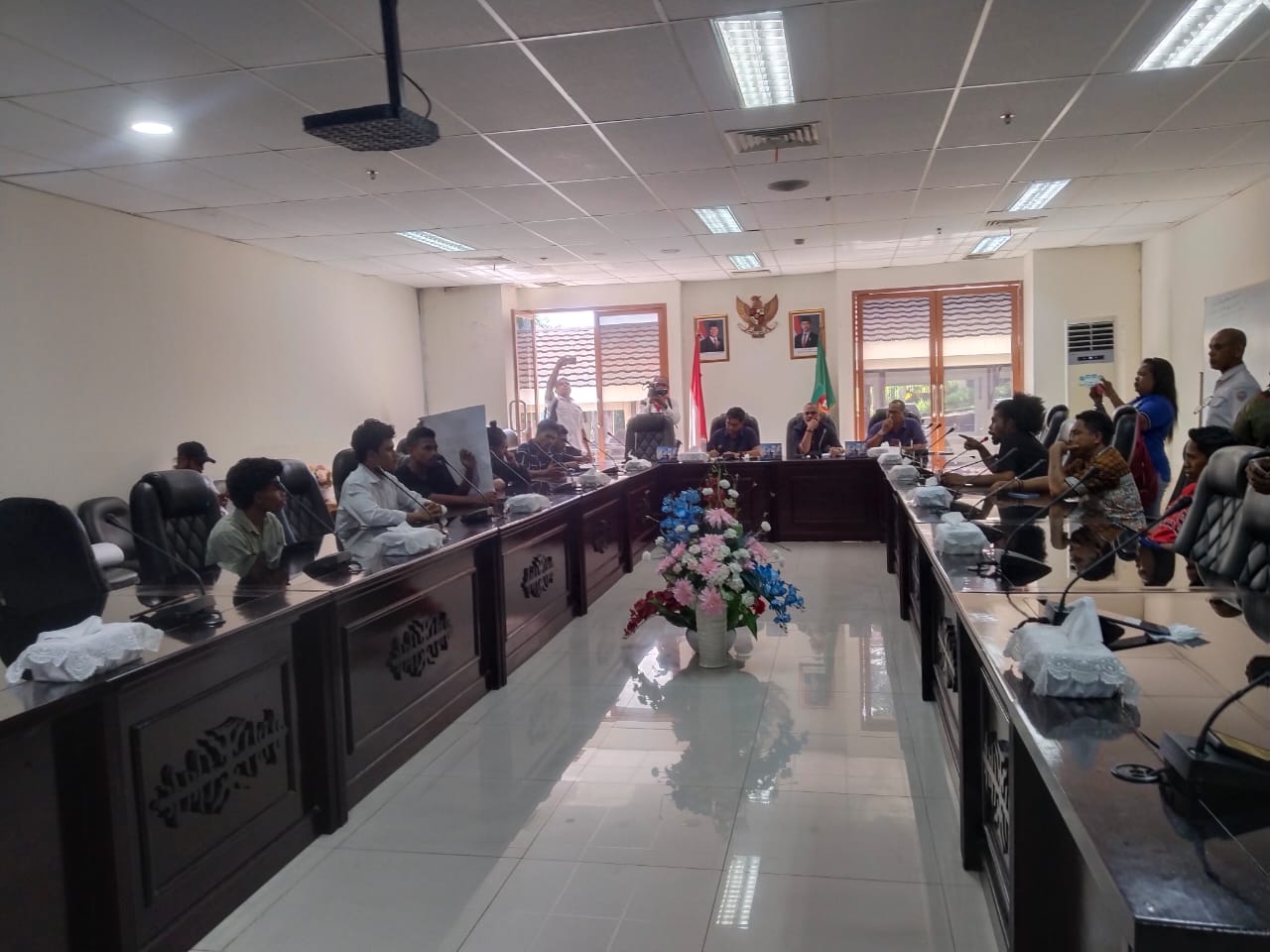 Sebelum melakukan pertemuan mereka terlebih dulu menggelar aksi demontrasi didepan kantor DPRD Provinsi Maluku, Rabu (11/06/2025).