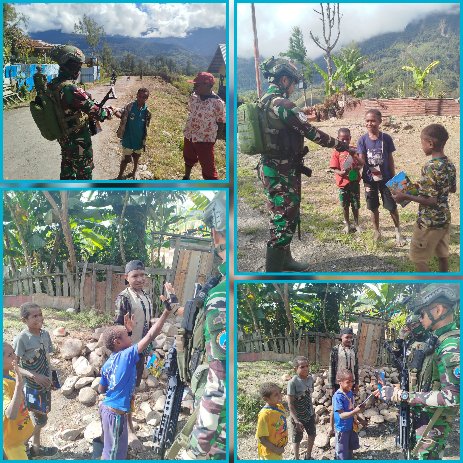 Dengan tetap mengutamakan keamanan selama kegiatan, interaksi komunikasi yang harmonis antara para Prajurit TNI dengan para warga semakin terjalin dengan inisiatif pembagian alat-alat tulis kepada anak-anak Bilogai. Kegembiraan anak-anak langsung terlihat dari senyum dan tawa lebar sesaat setelah menerima pemberian cuma-cuma para Prajurit TNI.