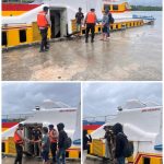 Personil Kompi 1 Batalyon C Pelopor Satuan Brimob Polda Maluku Gelar patroli keselamatan di Pelabuhan Kapal Cepat Tual-Elat.Rabu,16 Juli 2025.