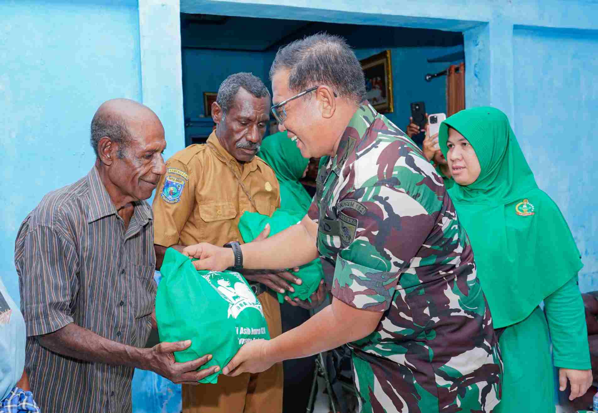 Di bawah langit Fakfak yang cerah, Danrem 182/JO Kolonel Inf Irwan Budiana S.E., M.M., M.Han bersama Ketua Persit KCK Koorcab Rem 182 Ny. Telly Irwan Budiana memimpin kegiatan sosial yang menyasar masyarakat pra-sejahtera.