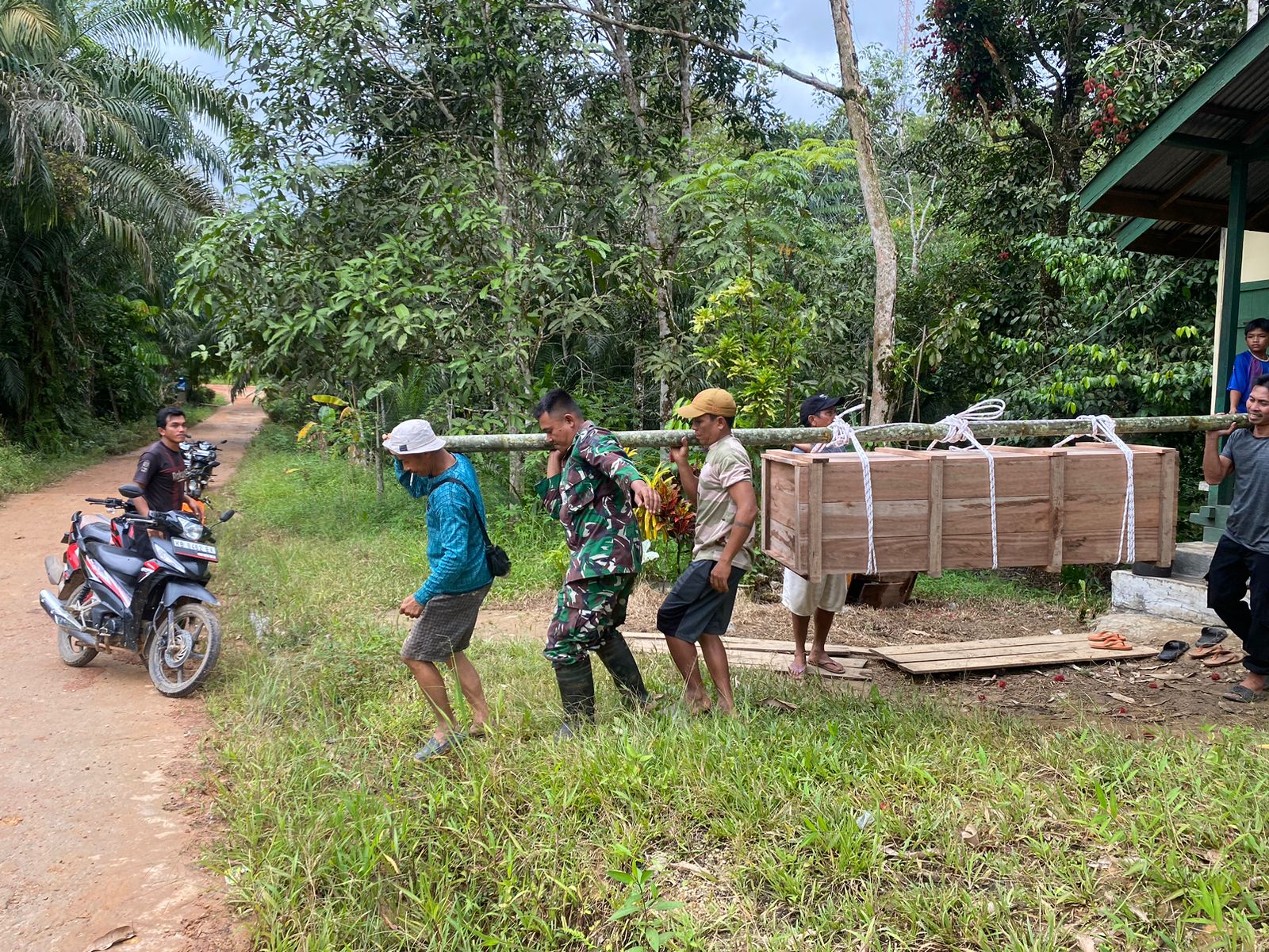 Bersama-sama Warga, Satgas Pamtas RI-Malaysia Yonzipur 5/ABW Bantu Warga Yang Sedang Berduka