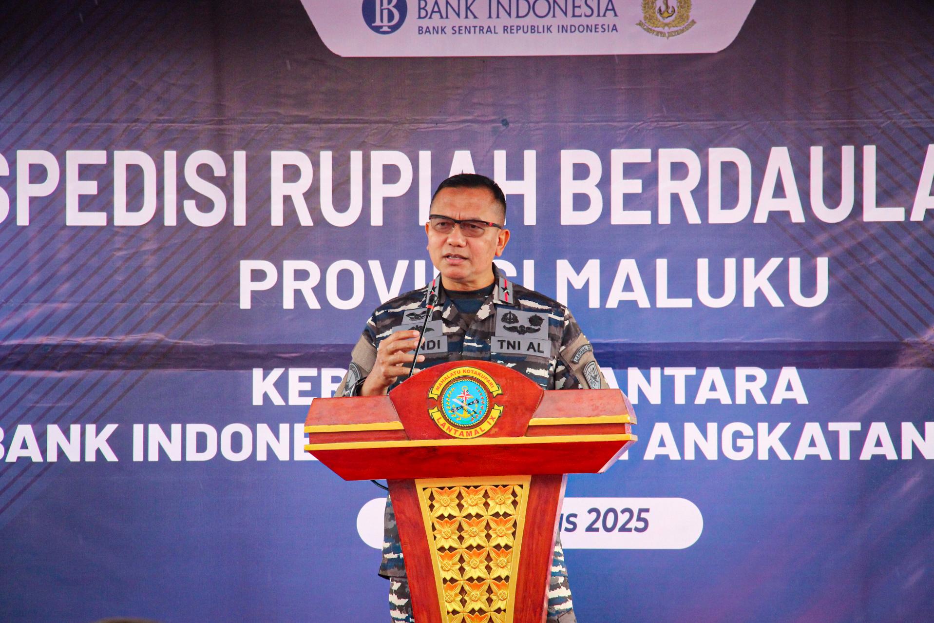 Dalam sambutannya Brigjen TNI (Mar) Suwandi menyampaikan “Saya sangat mengapresiasi dan mendukung Bank Indonesia Provinsi Maluku dengan kepercayaannya kepada TNI Angkatan Laut. Kami harap, kegiatan Ekspedisi Rupiah Berdaulat 2025 ini berdampak baik dan dapat dirasakan manfaatnya oleh masyarakat di Pulau tersebut,” ujar Brigjen Suwandi.