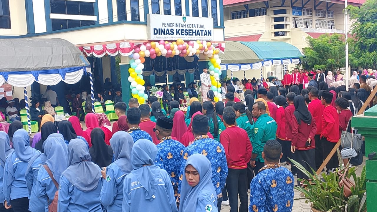 Tual,Kabarsulsel-indonesia.com. Dalam rangka memperingati Hari Kesehatan Nasional (HKN) ke-61 Tahun 2025, Pemerintah Kota Tual melalui Dinas Kesehatan menggelar Upacara yang berlangsung di halaman Kantor Dinas Kesehatan Kota Tual pada Rabu (12/11/2025)