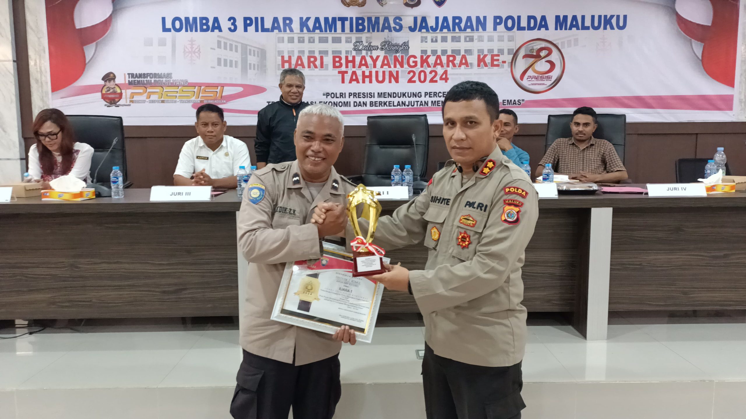 Ambon.Kabarsulsel.indonesia.com.Bhabinkamtibmas Negeri Latuhalat, Polresta Pulau Ambon dan Pulau-pulau Lease, keluar sebagai juara 1 lomba 3 pilar kamtibmas di wilayah Polda Maluku.