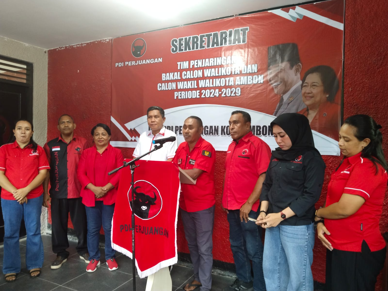 Ambon, Kabarsulsel-Indonesia.com | Pejabat Walikota Ambon Bodewin Wattimena mengembalikan formulir sekaligus mendaftarkan diri sebagai Bakal Calon Walikota Ambon Periode 2024-2029, dikantor Sekretariat DPC Partai Demokrasi Indonesia Perjuangan (PDI-P) Mangga Dua Kota Ambon, Selasa 30/4/2024.