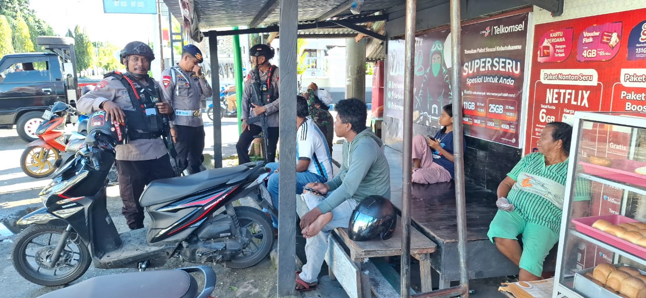 Patroli dipimpin oleh Aipda Muhamad Yusuf bersama tiga anggotanya, dengan titik fokus di sekitar Pangkalan Ojek Un Wartel dan area pasar yang menjadi pusat aktivitas warga.