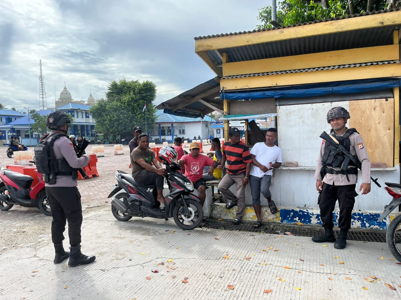 Patroli Harkamtibmas ini menyasar tempat keramain masyarakat seperti pengkalan ojek, Pelabuhan dan Pasar di kawasan tersebut.