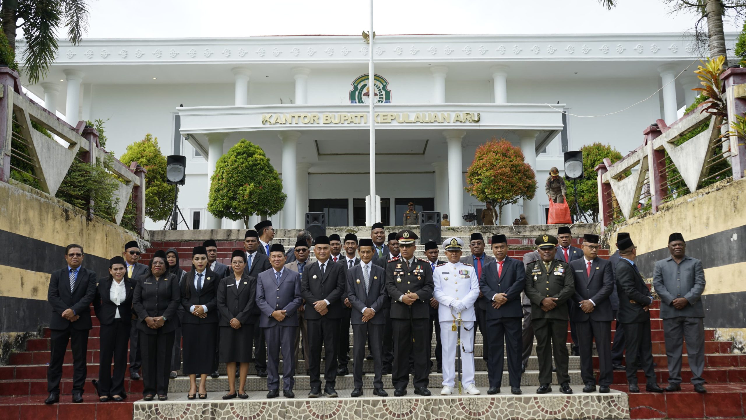 Turut hadir dalam upacara tersebut wakil bupati kepulauan Aru Drs. Mohamad Djumpa M. Si, sekertaris daerah Yakop Ubyaan S. Sos, pimpinan dan anggota DPRD Aru, Kapolres Kepulauan Aru AKBP Alebert Perwira Sihite S.I.K. MH, Danlanal Aru, Kejarari Kepulauan Aru, serta para pimpinan OPD lingkup Pemkab Aru.