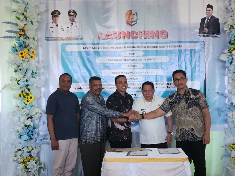 Fakfak, Kabarsulsel-Indonesia.com | Bupati Fakfak, Samaun Dahlan, S.Sos., M.AP, meresmikan peluncuran Aplikasi Sistem Informasi Manajemen Rumah Sakit (SIM-RS) serta Layanan Terpadu Satu Pintu yang terintegrasi dengan Dinas Kependudukan dan Catatan Sipil (Disdukcapil) serta Dinas Sosial Kabupaten Fakfak.