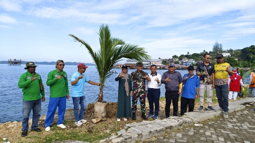Sebanyak enam pohon Pala Tomandin dan enam belas pohon kelapa ditanam di sepanjang kawasan reklamasi.