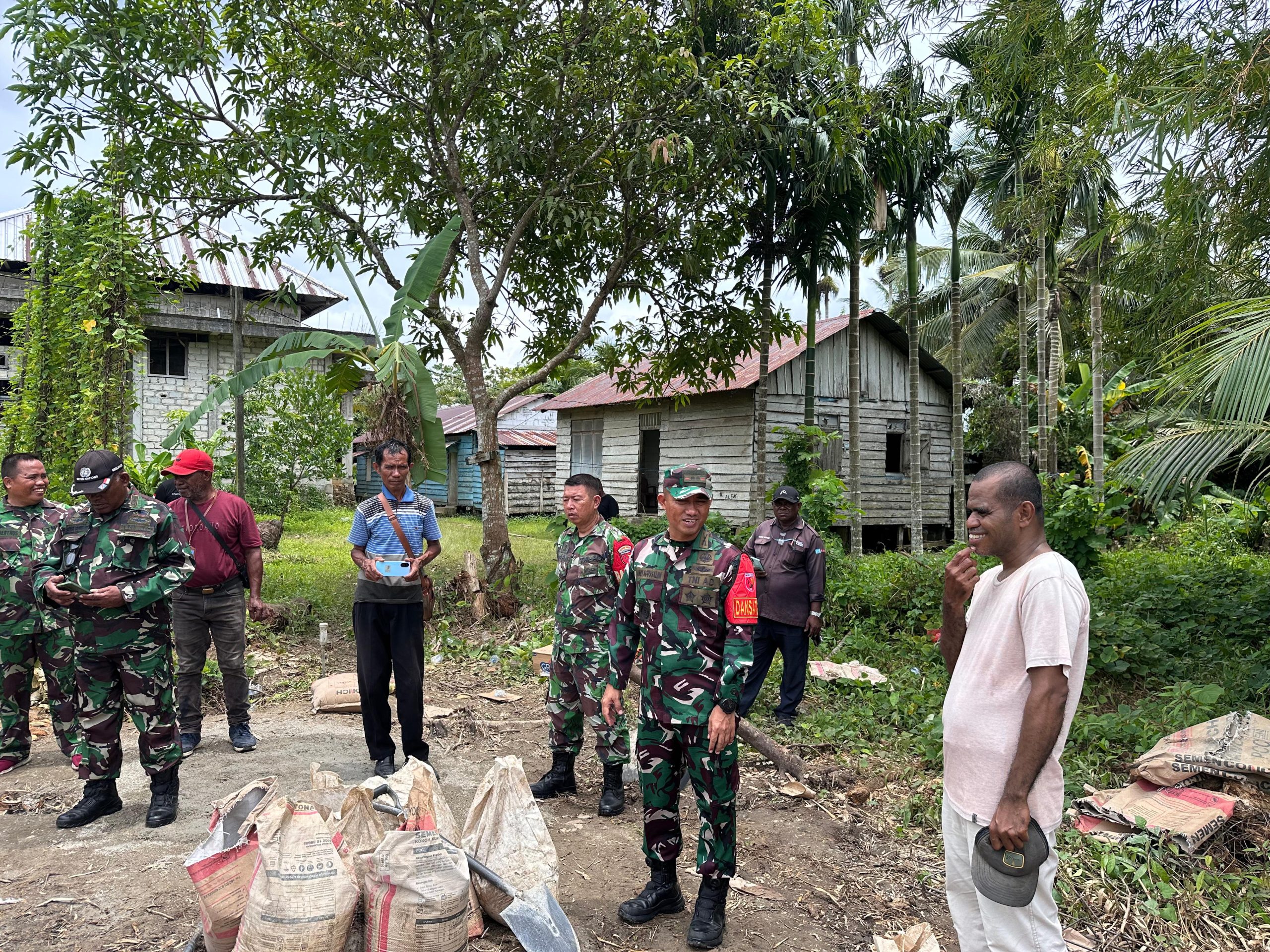 Ia juga mengecek kesiapan material, tenaga kerja, serta progres pekerjaan yang sedang dilakukan oleh personel bersama warga setempat.