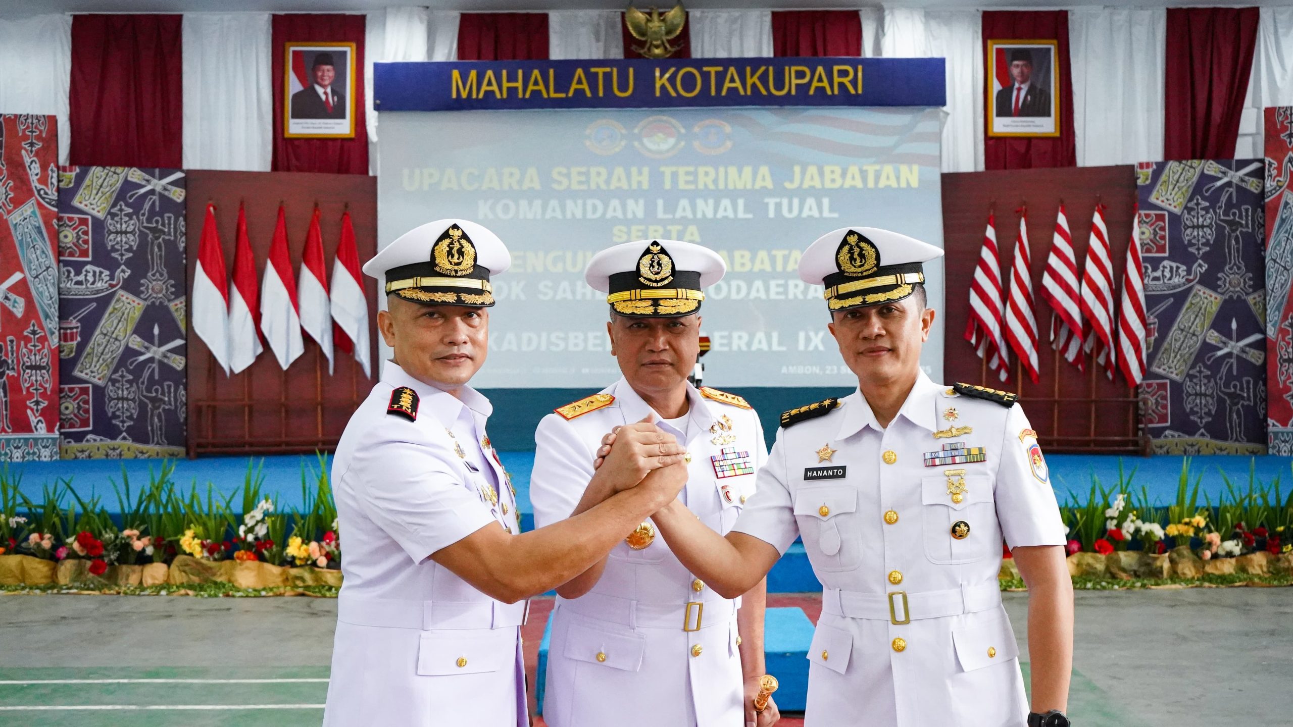 Pada acara tersebut Dankodaeral IX Laksda Hanarko Djodi P. pimpin upacara sertijab Danlanal Tual dari Kolonel Laut (P) Hananto Dwi P. S.T., M.Tr. Hanla., M.M., kepada Kolonel Laut (P) Andik Putro Wibowo S.Sos., CTHMP., CHRMP., M.A.P.,. dan mengukuhkan jabatan Kolonel Laut (PM) Joko Tri Suhartono S.H., sebagai Kapok Sahli Dankodaeral IX serta Letkol Laut (S) Tofan Hermawan S.E., M.Han., sebagai Kadisbek Kodaeral IX.