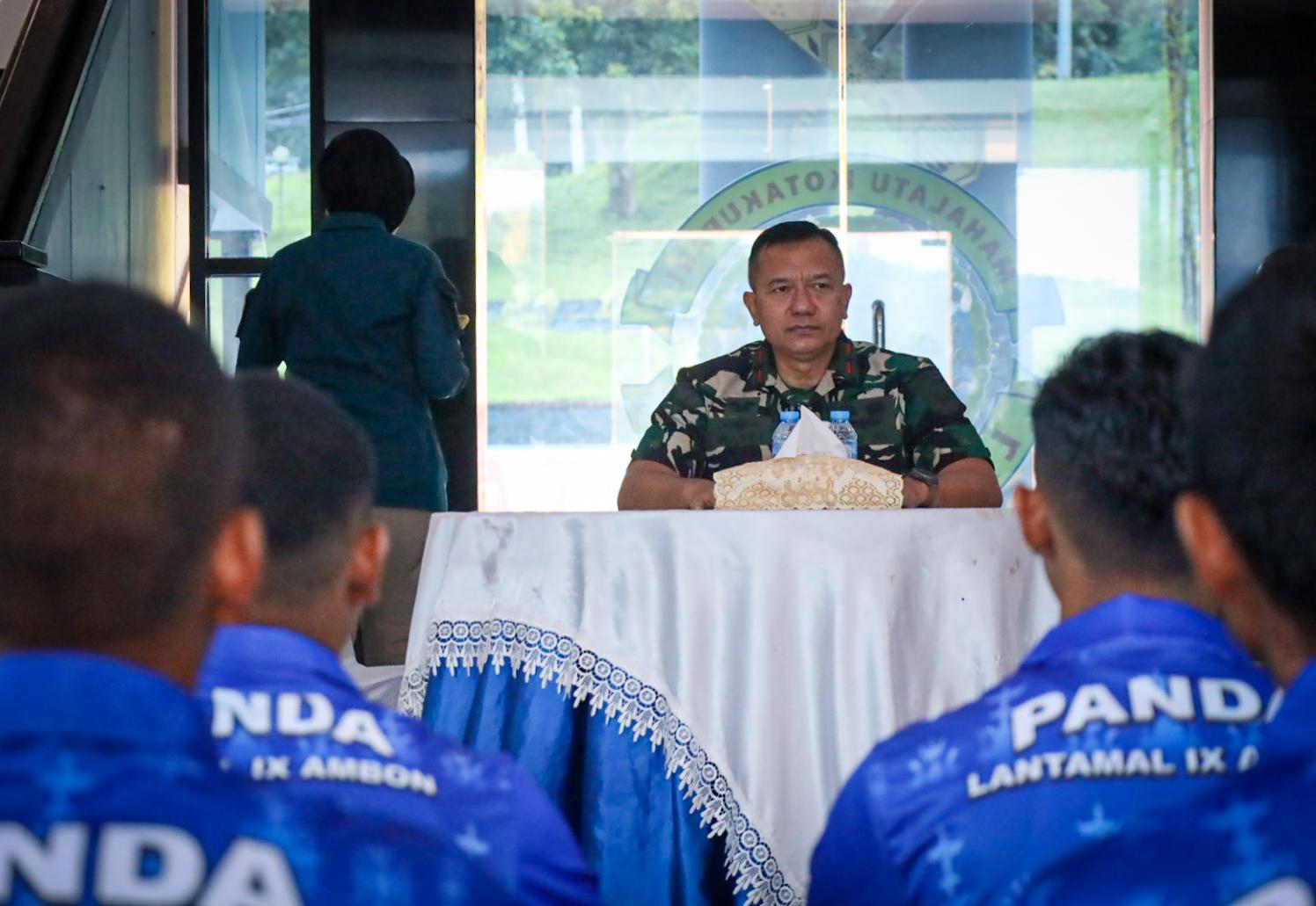 Sejumlah 42 orang Calon Siswa (Casis) Tamtama Panda Ambon akan berangkat hari Sabtu, 19 April 2025 untuk melaksanakan seleksi Panpus (Panitia Pusat) di Lapetal, Malang. Dalam rangka mempersiapkan casis menghadapi seleksi pusat, Brigjen TNI (Mar) Suwandi sebagai Danlantamal IX memberikan pembekalan secara langsung kepada seluruh casis yang akan berangkat.