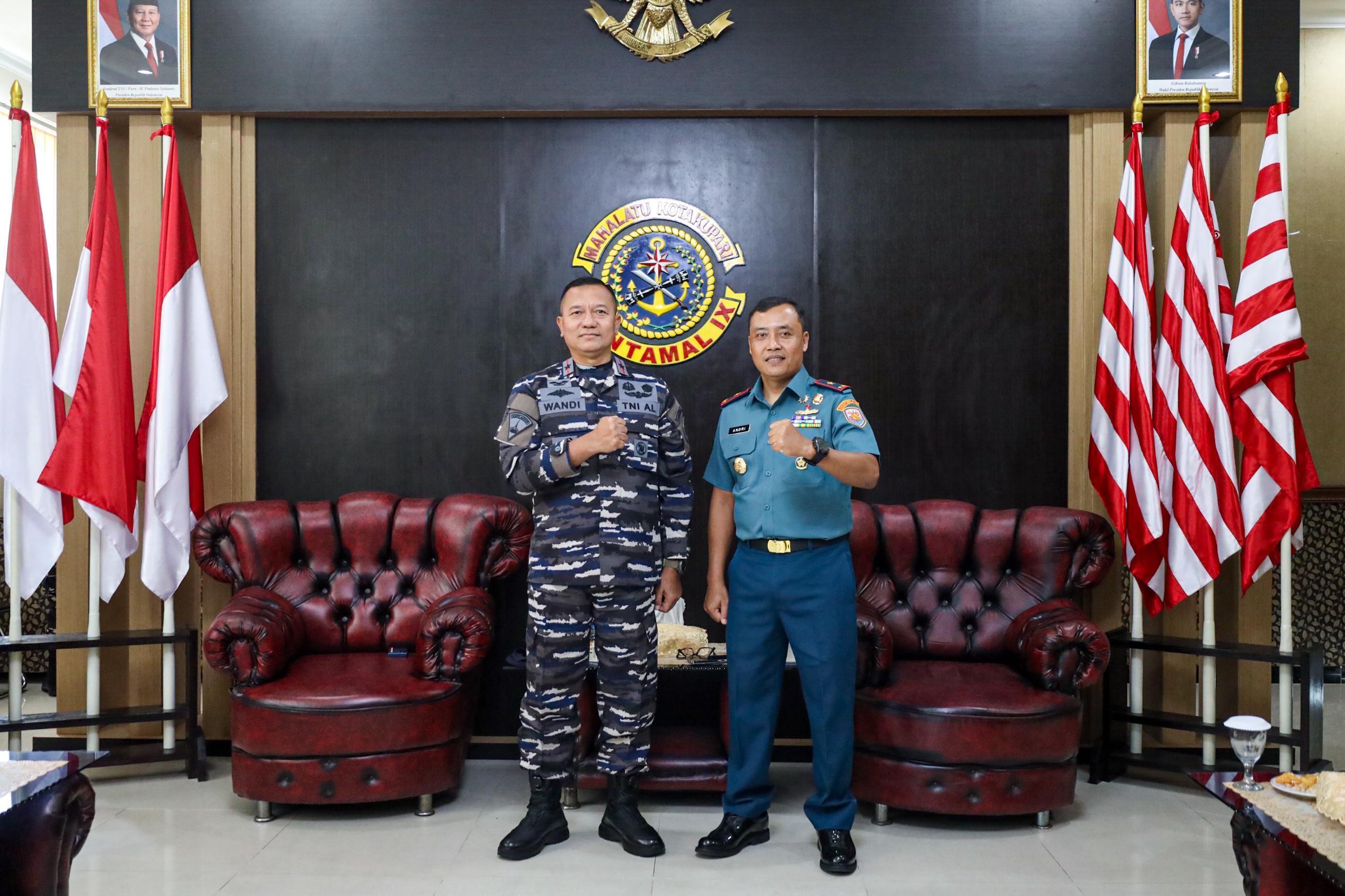 Ambon,Kabarsulsel-lndonesia.com. Brigjen TNI (Mar) Suwandi, S.A.P., M.M., menerima _Courtesy Call_ (CC) Komandan Gugus Tempur Laut (Danguspurla) Koarmada III Laksamana Pertama (Laksma) TNI Andri Kristianto, M.Han., bertempat di Lobby Mako Lantamal IX Ambon, Desa Halong, Kec. Baguala, Kota Ambon, Maluku. Selasa (29/07/2025)
