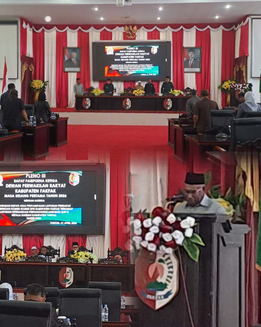 Fakfak, Kabarsulsel-Indonesia.com | Ruang sidang DPR Kabupaten Fakfak, Selasa, 21 April 2026, terasa lebih khidmat dari biasanya. Pada Rapat Paripurna Ketiga masa sidang pertama tahun 2026 itu, Pemerintah Kabupaten Fakfak menyampaikan jawaban atas pendapat dan pertanyaan gabungan komisi dewan dalam pembahasan Laporan Keterangan Pertanggungjawaban (LKPJ) Kepala Daerah Tahun 2025.