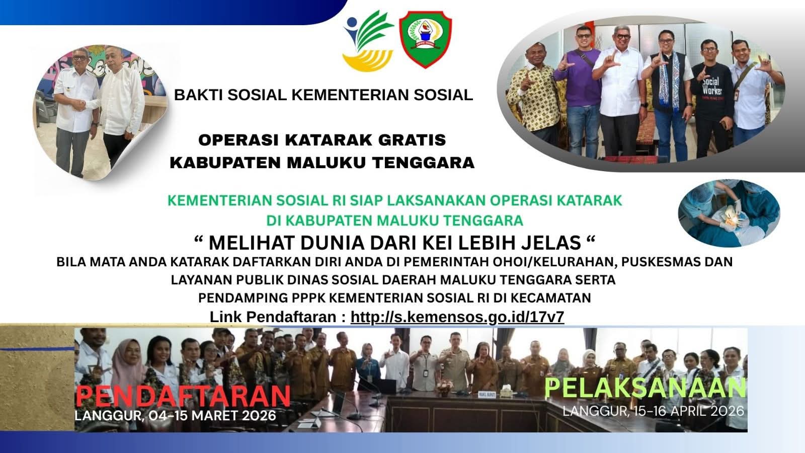 Kabarsulsel-Indonesia.com. Langgur,  Kegiatan bakti sosial operasi katarak terintegrasi yang digelar oleh Kementerian Sosial Republik Indonesia di Kabupaten Maluku Tenggara dijadwalkan berlangsung selama empat hari, mulai Selasa, 21 April hingga Jumat, 24 April 2026.