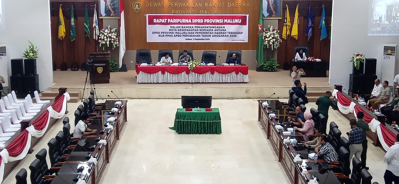 Nota kesepakatan yang ditandatangani oleh PJ Gubernur Maluku, Sadali Ie mewakili Pemprov Maluku, dan Wakil Ketua DPRD, Abdullah Asis Sangkala mewakili DPRD ini dilakukan, saat rapat paripurna dalam rangka penandatanganan nota kesepakatan bersama antara DPRD Provinsi Maluku dengan Pemerintah Daerah (Pemda) terhadap KUPA-PPAS Perubahan APBD Provinsi Maluku Tahun Anggaran 2025, yang berlangsung di ruang rapat paripurna, kantor DPRD setempat, Rabu (11/9/2024) malam.
