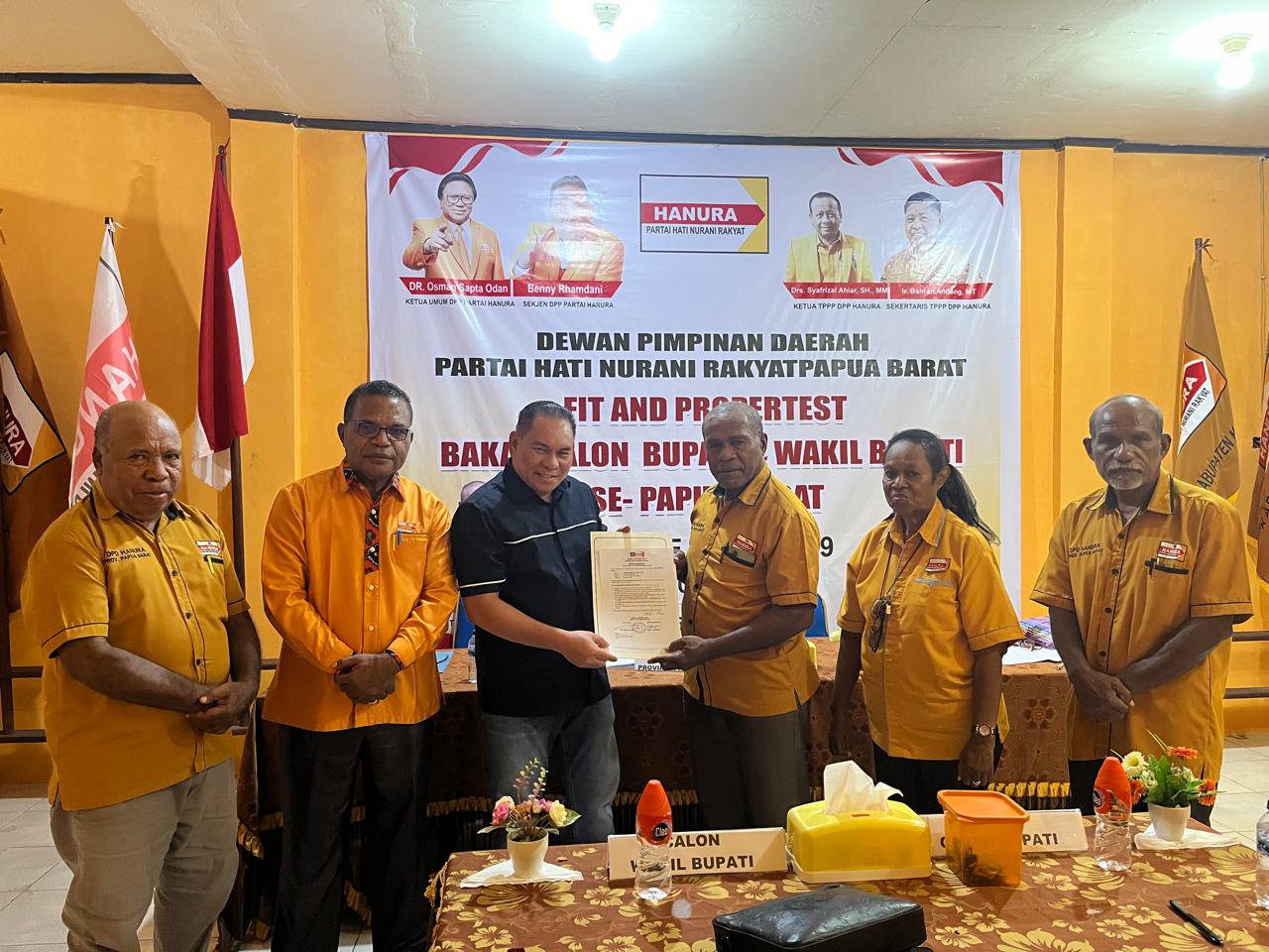 Surat Rekomendasi dengan Nomor: RK/497/DPP-HANURA/V/2024, di mana isinya mengisyaratkan bahwa Dewan Pimpinan Pusat Partai Hati Nurani Rakyat (HANURA) memberikan REKOMENDASI Kepada : SAMAUN DAHLAN, S.Sos., M.AP. Sebagai Bakal Calon Bupati Kabupaten Fakfak Periode 2024-2029 yang akan diusung dan/atau didukung Partai HANURA.