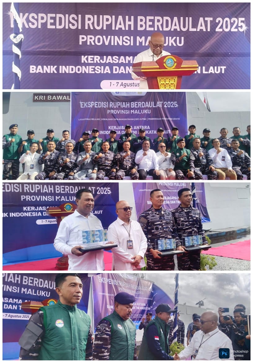 Ambon,Kabarsulsel-Indonesia.com. Sebagai bentuk komitmen Bank Indonesia (BI) dalam memastikan ketersedian uang layak edar di wilayah Negara Kesatuan Republik Indonesia (NKRI), Kantor Perwakilan Bank Indonesia Provinsi Maluku (KPw BI Maluku) bersama Tentara Nasional Indonesia Angkatan Laut (TNI AL) kembali menyelenggarakan “Ekspedisi Rupiah Berdaulat (ERB) 2025”.