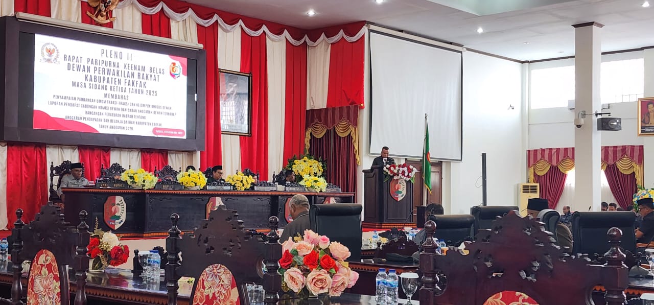 Fakfak, Kabarsulsel-Indonesia.com | Di tengah tekanan fiskal dan penurunan pendapatan daerah, Fraksi Karya Demokrasi Perjuangan Nasional Indonesia DPR Kabupaten Fakfak menegaskan perlunya kebijakan anggaran yang lebih presisi, inklusif, dan berpihak pada kebutuhan riil masyarakat. Hal itu disampaikan dalam Rapat Pleno Ke-Dua Rapat Paripurna Ke-Enam Belas DPRK Fakfak Masa Sidang Ketiga Tahun 2025, saat fraksi tersebut menyampaikan pandangan umum terhadap Rancangan Peraturan Daerah tentang APBD Kabupaten Fakfak Tahun Anggaran 2026.