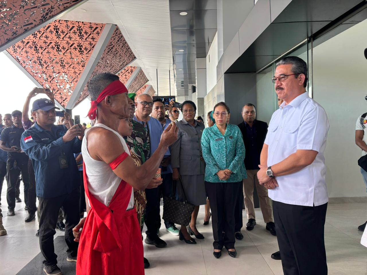 Sementara turut hadir dalam Kedatangan gubernur diantaranya, Bupati Kepulauan Aru, Timotius Kaidel, Wakil bupati Drs Moh. Djumpa M.Si, Ketua DPRD Kabupaten Kepulauan Aru, Feny Loy, Sekda Kab. Kepulauan Aru, Jacob Ubyaan, S.Sos, Kapolres kepulauan Aru AKBP Albert Perwira Sihite, S.H.,S.I.K.,M.H, Komandan Lanal Aru, Lektol Laut (P) Sriadi, S.E., M.Tr. Opsla, Danramil 1503-03/Dobo, Kapten Inf H. Bakri Renhoat, Kajari Kepulauan Aru, Sumanggar Siagian, S.H., M.H, Para Pimpinan OPD Lingkup Pemerintah Kabupaten Kepulauan Aru serta toko adat desa durjela yohanes kobrua.