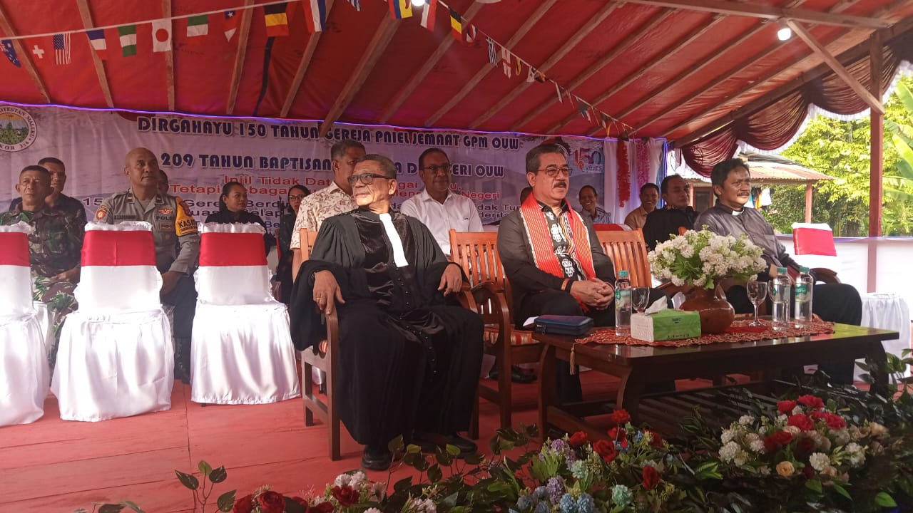 Gubernur menyampaikan apresiasi kepada Ketua Majelis Jemaat, para pelayan gereja, Pemerintah Negeri Ouw, panitia perayaan, serta seluruh warga Jemaat GPM Ouw, baik yang bermukim di kampung halaman maupun di perantauan, atas kesetiaan mereka merawat Gedung Gereja PNIEL dan menjaga warisan iman Baptisan pertama yang telah berusia 209 tahun.