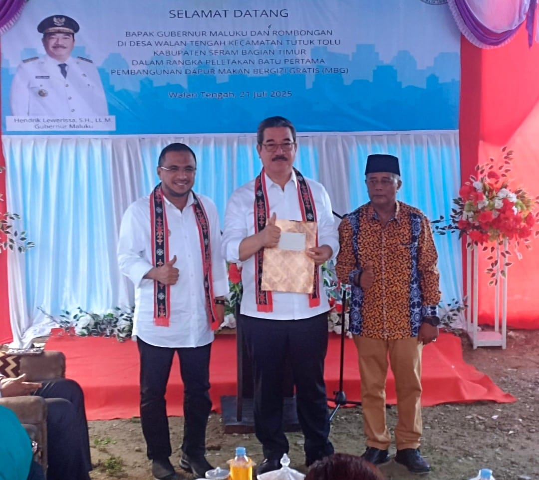 Ambon,Kabarsulsel-lndonesia.com. WALANG TENGAH, SBT — Di tengah semangat membara membangun negeri, Gubernur Maluku Hendrik Lewerissa kembali menunjukkan komitmennya terhadap masa depan anak-anak bangsa. Dengan wajah berseri dan senyum tulus, ia meletakkan batu pertama pembangunan Dapur Makanan Bergizi Gratis (MBG) di Desa Walang Tengah, Senin (21/7/2025).