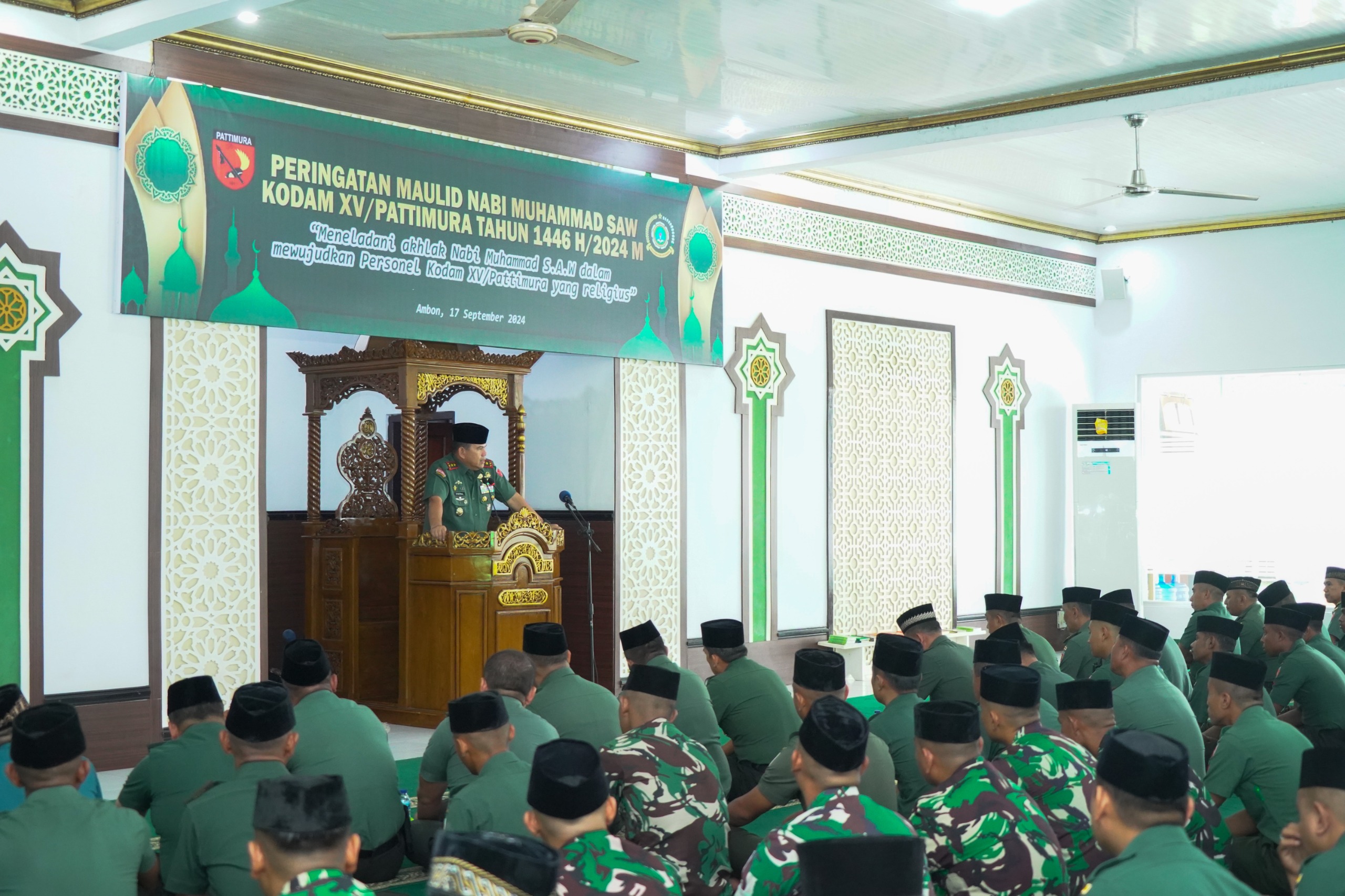 Dalam kesempatan yang sama, Kabintaljarahdam XV/Pattimura Kolonel Inf Mustaqfirin, S.Ag., M.Sc., yang bertindak sebagai penceramah, menyampaikan arti dari Maulid itu sendiri, yaitu peringatan kelahiran Rasulullah SAW sebagai Rahmatanlilalamin. Maulid Nabi ini adalah momen untuk menggali kembali sejarah beliau dan mengambil pelajaran dari akhlak mulia Rasulullah.