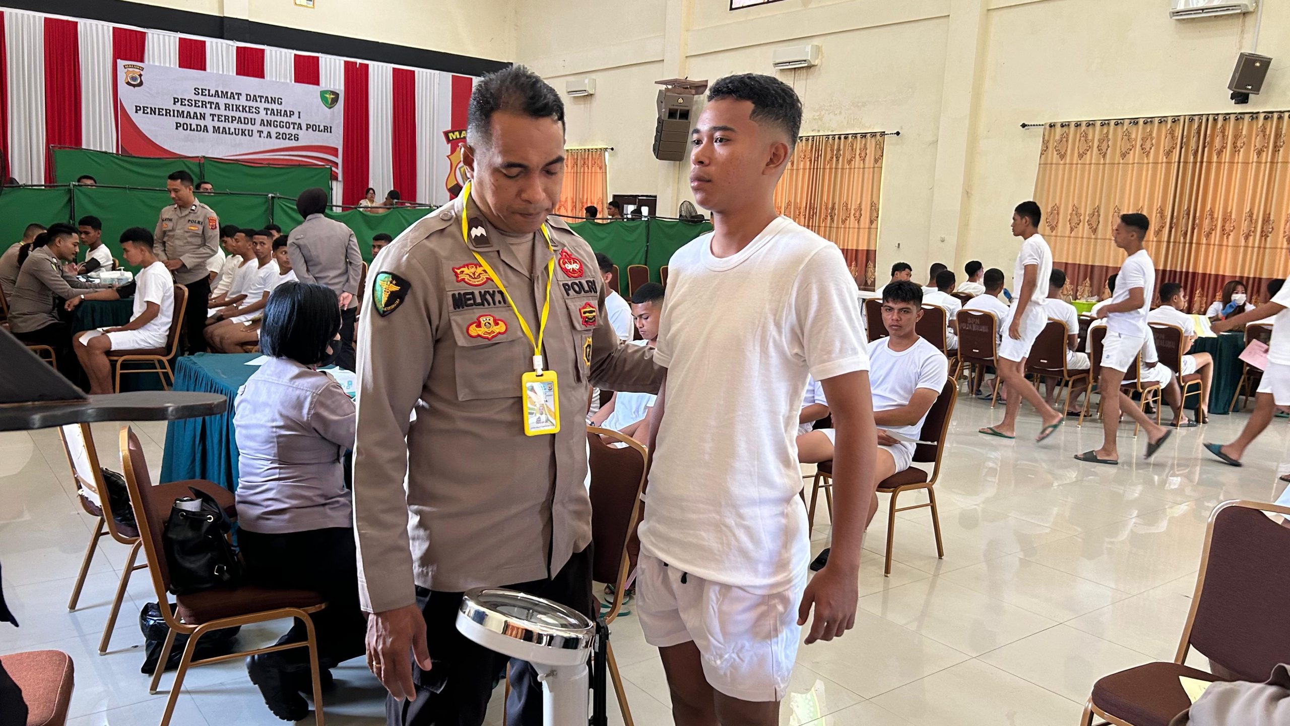 Kegiatan pemeriksaan berlangsung di Gedung Faisal Heluth, SPN Polda Maluku, Rabu (15/4/2026), dengan melibatkan tim medis dari Bidang Kedokteran dan Kesehatan (Bid Dokkes).