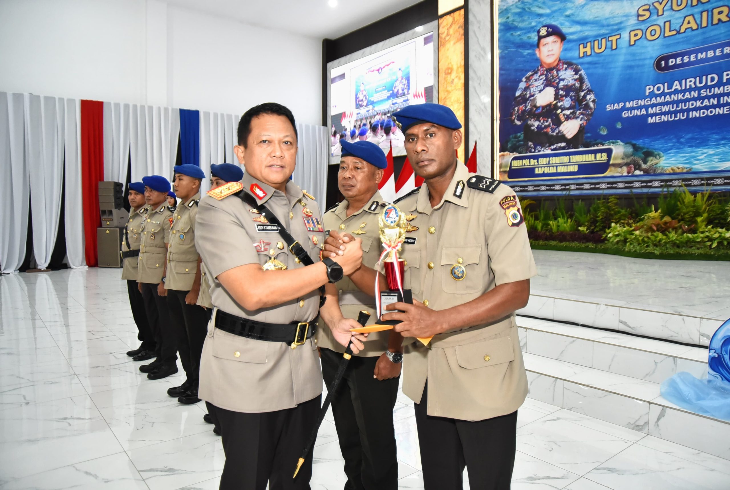 Ambon.Kabarsulse.lndonesia.com. POLDAMALUKU– Kapolda Maluku, Irjen Pol. Drs. Eddy Sumitro Tambunan, M.Si., menghadiri acara syukuran HUT Polairud ke-74 yang digelar di Gedung Plaza Presisi Manise, Polda Maluku, Tantui, Kota Ambon, Selasa (3/12/2024).