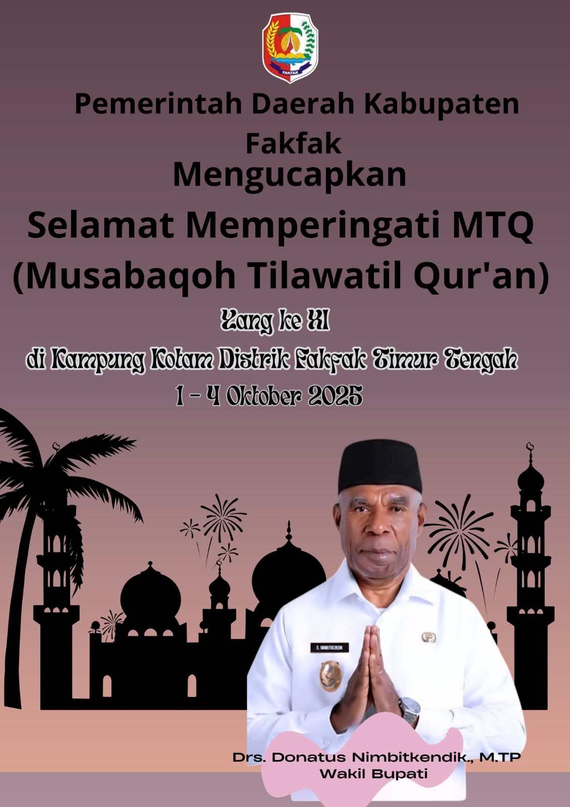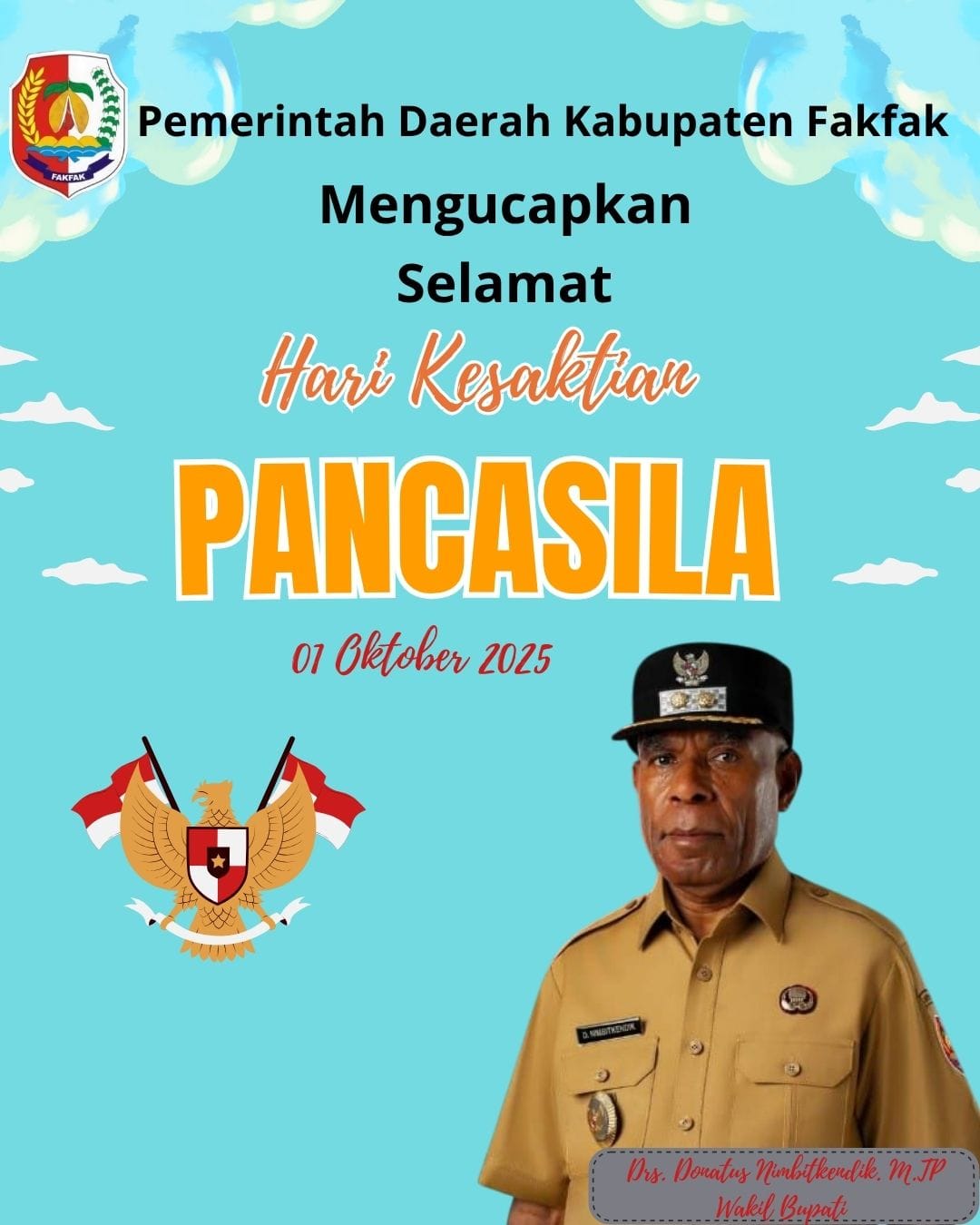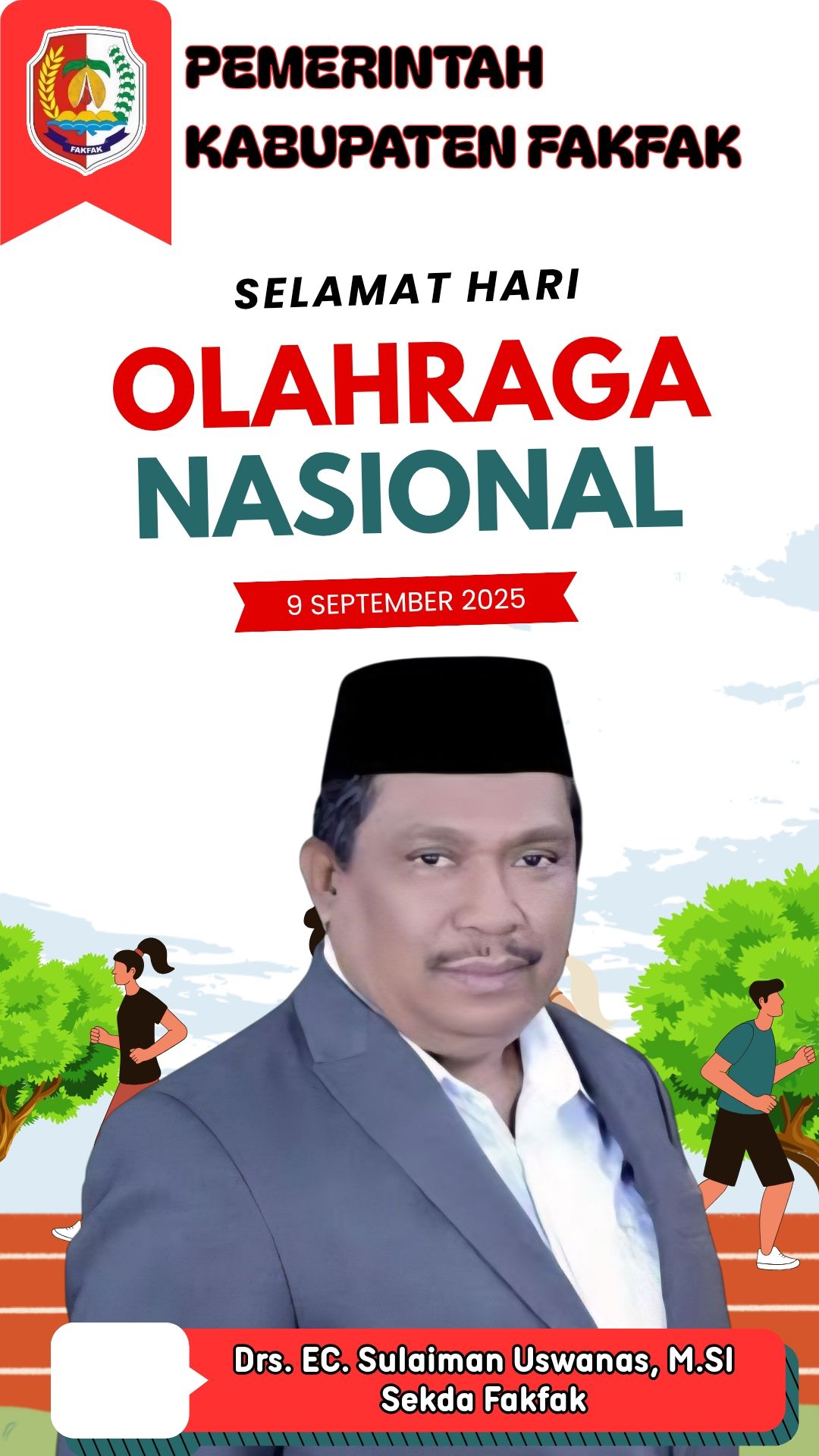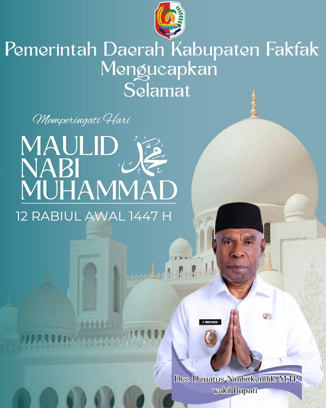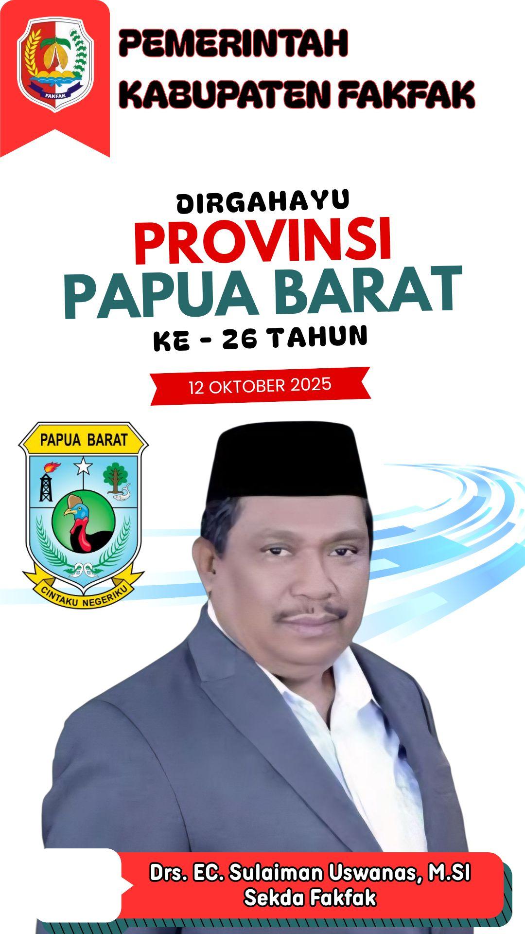 Bupati Kabupaten Fakfak Samaun Dahlan, S.Sos., M.AP Mengucapkan Selamat Merayakan Hari Sumpah Pemuda (28 Oktober 2025)Bupati Kabupaten Fakfak Samaun Dahlan, S.Sos., M.AP Mengucapkan Selamat Merayakan MTQ Ke-XI Kabupaten Fakfak di Kampung Kotam Distrik Fakfak Timur Tengah (01-04 Oktober 2025)Bupati Kabupaten Fakfak Samaun Dahlan, S.Sos., M.AP Mengucapkan Dirgahayu Ke-75 Tahun Ikatan Dokter Indonesia (24 Oktober 2025)Bupati Kabupaten Fakfak Samaun Dahlan, S.Sos., M.AP Mengucapkan Dirgahayu Tentara Nasional Indonesia (05 Oktober 2025)Bupati Kabupaten Fakfak Samaun Dahlan, S.Sos., M.AP Mengucapkan Selamat Hari Kesaktian Pancasila (01 Oktober 2025)Bupati Kabupaten Fakfak Samaun Dahlan, S.Sos., M.AP Mengucapkan Selamat Hari Perhubungan Nasional (17 September 2025)Bupati Kabupaten Fakfak Samaun Dahlan, S.Sos., M.AP Mengucapkan Selamat Hari Olah Raga Nasional (09 September 2025)Bupati Kabupaten Fakfak Samaun Dahlan, S.Sos., M.AP Mengucapkan Selamat Merayakan Maulud Nabi Muhammad SAW 1446 H/2025 Masehi.Wakil Bupati Fakfak Drs. Donatus Nimbitkendik, M.TP Mengucapkan Selamat Merayakan MTQ Ke-XI Kabupaten Fakfak di Kampung Kotam Distrik Fakfak Timur Tengah (01-04 Oktober 2025)Wakil Bupati Fakfak Drs. Donatus Nimbitkendik, M.TP Mengucapkan Selamat Merayakan Hari Sumpah Pemuda Ke-97 Tahun (28 Oktober 2025)Wakil Bupati Fakfak Drs. Donatus Nimbitkendik, M.TP Mengucapkan Dirgahayu Provinsi Papua Barat Ke-26 Tahun (12 Oktober 2025)Wakil Bupati Fakfak Drs. Donatus Nimbitkendik, M.TP Mengucapkan Dirgahayu Tentara Nasional Indonesia Ke- 80 Tahun (05 Oktober 2025)Wakil Bupati Fakfak Drs. Donatus Nimbitkendik, M.TP Mengucapkan Selamat Hari Kesaktian Pancasila (01 Oktober 2025)Wakil Bupati Fakfak Drs. Donatus Nimbitkendik, M.TP Mengucapkan Selamat Hari Perhubungan Nasional (17 September 2025)Wakil Bupati Fakfak Drs. Donatus Nimbitkendik, M.TP Mengucapkan Selamat Hari Olah Raga Nasional (09 September 2025)Wakil Bupati Fakfak Drs. Donatus Nimbitkendik, M.TP Mengucapkan Selamat Memperingati Maulud Nabi Muhammad SAW 1447 H.Sekretaris Daerah Kabupaten Fakfak (Drs. EC. Sulaeman Uswanas, M.Si) Mengucapkan Selamat Merayakan MTQ Ke-XI Kabupaten Fakfak Di Kampung Kotam Distrik Fakfak Timur Tengah (01-04 Oktober 2025)Sekretaris Daerah Kabupaten Fakfak (Drs. EC. Sulaeman Uswanas, M.Si) Mengucapkan Selamat Hari Sumpah Pemuda (28 Oktober 2025)Sekretaris Daerah Kabupaten Fakfak (Drs. EC. Sulaeman Uswanas, M.Si) Mengucapkan Dirgahayu Provinsi Papua Barat Ke – 26 Tahun (12 Oktober 2025)Sekretaris Daerah Kabupaten Fakfak (Drs. EC. Sulaeman Uswanas, M.Si) Mengucapkan Dirgahayu TNI Ke-80 Tahun (05 Oktober 2025)Sekretaris Daerah Kabupaten Fakfak (Drs. EC. Sulaeman Uswanas, M.Si) Mengucapkan Selamat Memperingati Hari Kesaktian Pancasila (1 Oktober 2025)Sekretaris Daerah Kabupaten Fakfak (Drs. EC. Sulaeman Uswanas, M.Si) Mengucapkan Selamat Hari Perhubungan Nasional (17 September 2025)Sekretaris Daerah Kabupaten Fakfak (Drs. EC. Sulaeman Uswanas, M.Si) Mengucapkan Selamat Hari Olah Raga Nasional (09 September 2025)Sekretaris Daerah Kabupaten Fakfak (Drs. EC. Sulaeman Uswanas, M.Si) Mengucapkan Selamat Merayakan Maulud Nabi Muhammad SAW 1447 H.