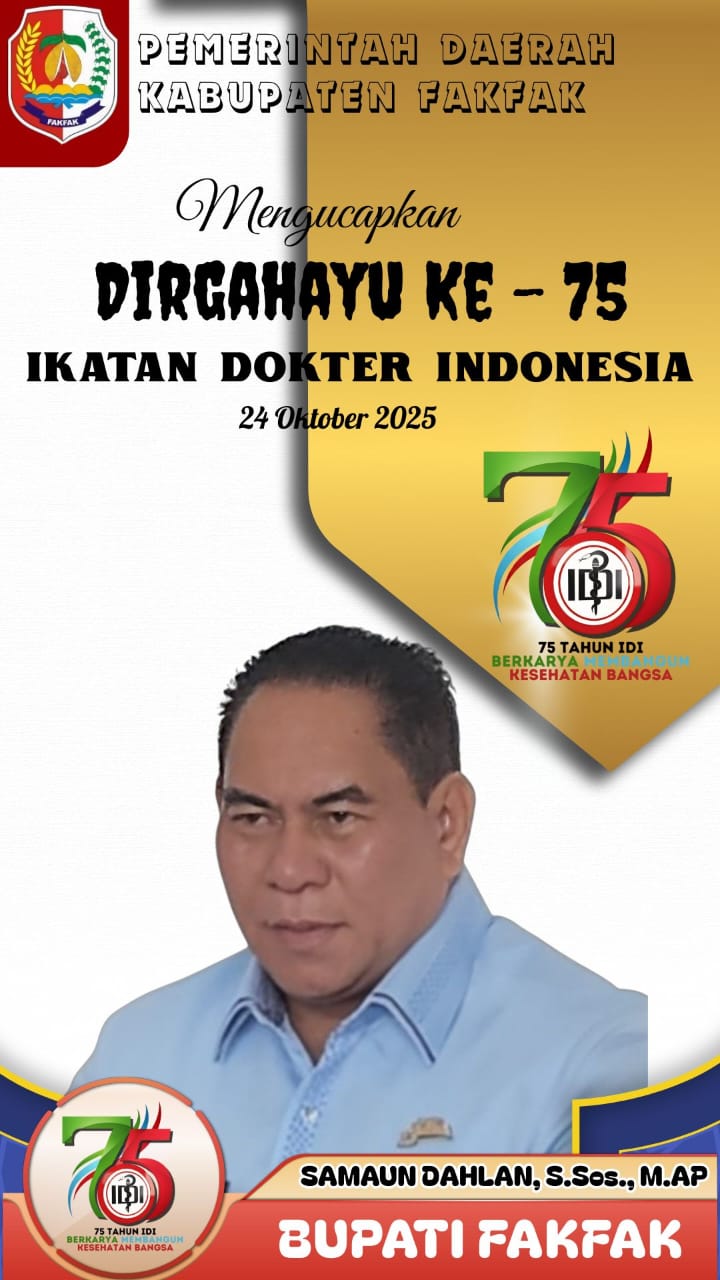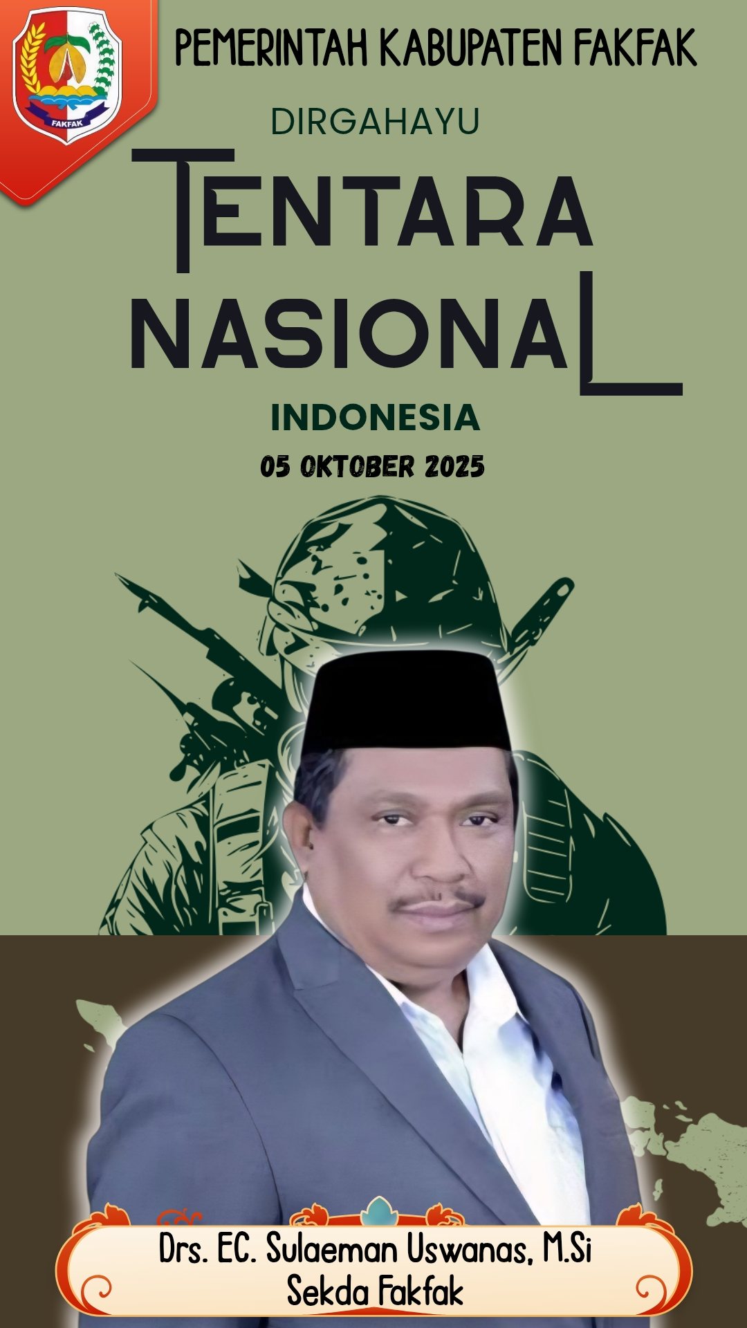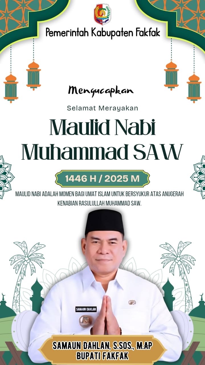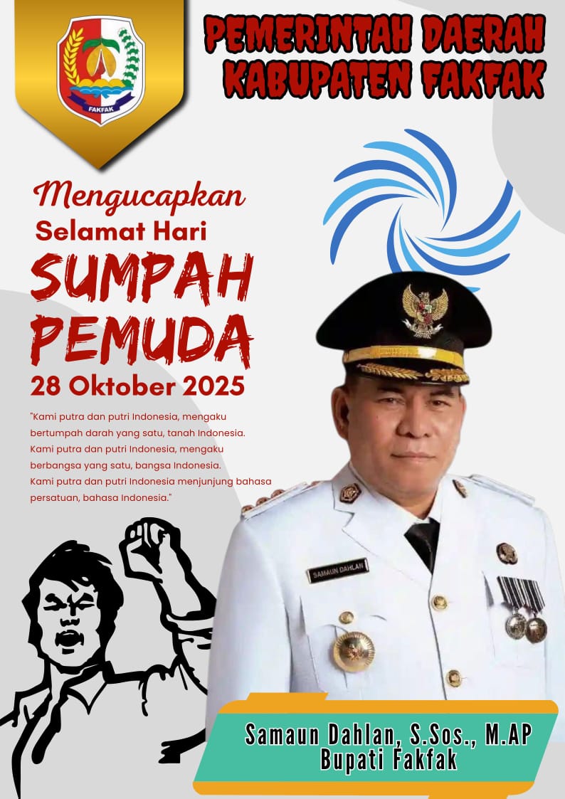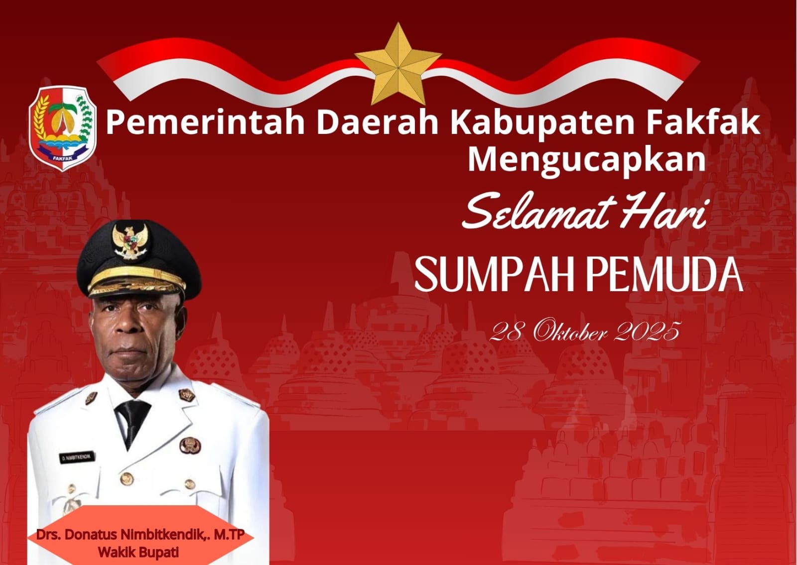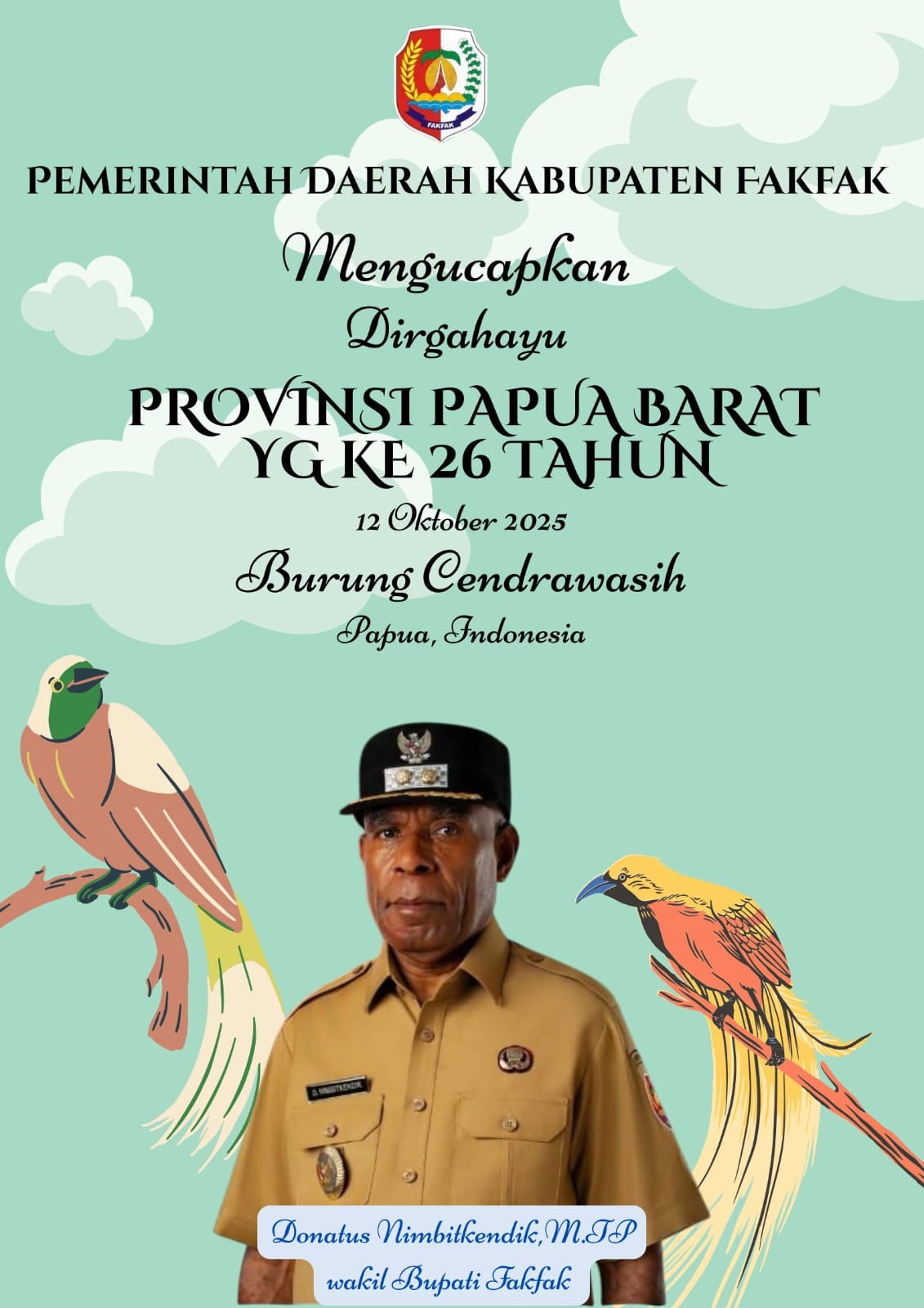 Bupati Kabupaten Fakfak Samaun Dahlan, S.Sos., M.AP Mengucapkan Selamat Merayakan Hari Sumpah Pemuda (28 Oktober 2025)Bupati Kabupaten Fakfak Samaun Dahlan, S.Sos., M.AP Mengucapkan Selamat Merayakan MTQ Ke-XI Kabupaten Fakfak di Kampung Kotam Distrik Fakfak Timur Tengah (01-04 Oktober 2025)Bupati Kabupaten Fakfak Samaun Dahlan, S.Sos., M.AP Mengucapkan Dirgahayu Ke-75 Tahun Ikatan Dokter Indonesia (24 Oktober 2025)Bupati Kabupaten Fakfak Samaun Dahlan, S.Sos., M.AP Mengucapkan Dirgahayu Tentara Nasional Indonesia (05 Oktober 2025)Bupati Kabupaten Fakfak Samaun Dahlan, S.Sos., M.AP Mengucapkan Selamat Hari Kesaktian Pancasila (01 Oktober 2025)Bupati Kabupaten Fakfak Samaun Dahlan, S.Sos., M.AP Mengucapkan Selamat Hari Perhubungan Nasional (17 September 2025)Bupati Kabupaten Fakfak Samaun Dahlan, S.Sos., M.AP Mengucapkan Selamat Hari Olah Raga Nasional (09 September 2025)Bupati Kabupaten Fakfak Samaun Dahlan, S.Sos., M.AP Mengucapkan Selamat Merayakan Maulud Nabi Muhammad SAW 1446 H/2025 Masehi.Wakil Bupati Fakfak Drs. Donatus Nimbitkendik, M.TP Mengucapkan Selamat Merayakan MTQ Ke-XI Kabupaten Fakfak di Kampung Kotam Distrik Fakfak Timur Tengah (01-04 Oktober 2025)Wakil Bupati Fakfak Drs. Donatus Nimbitkendik, M.TP Mengucapkan Selamat Merayakan Hari Sumpah Pemuda Ke-97 Tahun (28 Oktober 2025)Wakil Bupati Fakfak Drs. Donatus Nimbitkendik, M.TP Mengucapkan Dirgahayu Provinsi Papua Barat Ke-26 Tahun (12 Oktober 2025)Wakil Bupati Fakfak Drs. Donatus Nimbitkendik, M.TP Mengucapkan Dirgahayu Tentara Nasional Indonesia Ke- 80 Tahun (05 Oktober 2025)Wakil Bupati Fakfak Drs. Donatus Nimbitkendik, M.TP Mengucapkan Selamat Hari Kesaktian Pancasila (01 Oktober 2025)Wakil Bupati Fakfak Drs. Donatus Nimbitkendik, M.TP Mengucapkan Selamat Hari Perhubungan Nasional (17 September 2025)Wakil Bupati Fakfak Drs. Donatus Nimbitkendik, M.TP Mengucapkan Selamat Hari Olah Raga Nasional (09 September 2025)Wakil Bupati Fakfak Drs. Donatus Nimbitkendik, M.TP Mengucapkan Selamat Memperingati Maulud Nabi Muhammad SAW 1447 H.Sekretaris Daerah Kabupaten Fakfak (Drs. EC. Sulaeman Uswanas, M.Si) Mengucapkan Selamat Merayakan MTQ Ke-XI Kabupaten Fakfak Di Kampung Kotam Distrik Fakfak Timur Tengah (01-04 Oktober 2025)Sekretaris Daerah Kabupaten Fakfak (Drs. EC. Sulaeman Uswanas, M.Si) Mengucapkan Selamat Hari Sumpah Pemuda (28 Oktober 2025)Sekretaris Daerah Kabupaten Fakfak (Drs. EC. Sulaeman Uswanas, M.Si) Mengucapkan Dirgahayu Provinsi Papua Barat Ke – 26 Tahun (12 Oktober 2025)Sekretaris Daerah Kabupaten Fakfak (Drs. EC. Sulaeman Uswanas, M.Si) Mengucapkan Dirgahayu TNI Ke-80 Tahun (05 Oktober 2025)Sekretaris Daerah Kabupaten Fakfak (Drs. EC. Sulaeman Uswanas, M.Si) Mengucapkan Selamat Memperingati Hari Kesaktian Pancasila (1 Oktober 2025)Sekretaris Daerah Kabupaten Fakfak (Drs. EC. Sulaeman Uswanas, M.Si) Mengucapkan Selamat Hari Perhubungan Nasional (17 September 2025)Sekretaris Daerah Kabupaten Fakfak (Drs. EC. Sulaeman Uswanas, M.Si) Mengucapkan Selamat Hari Olah Raga Nasional (09 September 2025)Sekretaris Daerah Kabupaten Fakfak (Drs. EC. Sulaeman Uswanas, M.Si) Mengucapkan Selamat Merayakan Maulud Nabi Muhammad SAW 1447 H.
