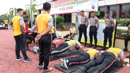 Jepara, Kabarsulsel-Indonesia.com; Ratusan Personil Polres Jepara Polda Jawa Tengah mengikuti Tes Kesamaptaan Jasmani (TKJ) berkala semester 1 tahun 2024 di halaman Mapolres Jepara, Jumat (12/1/2024).