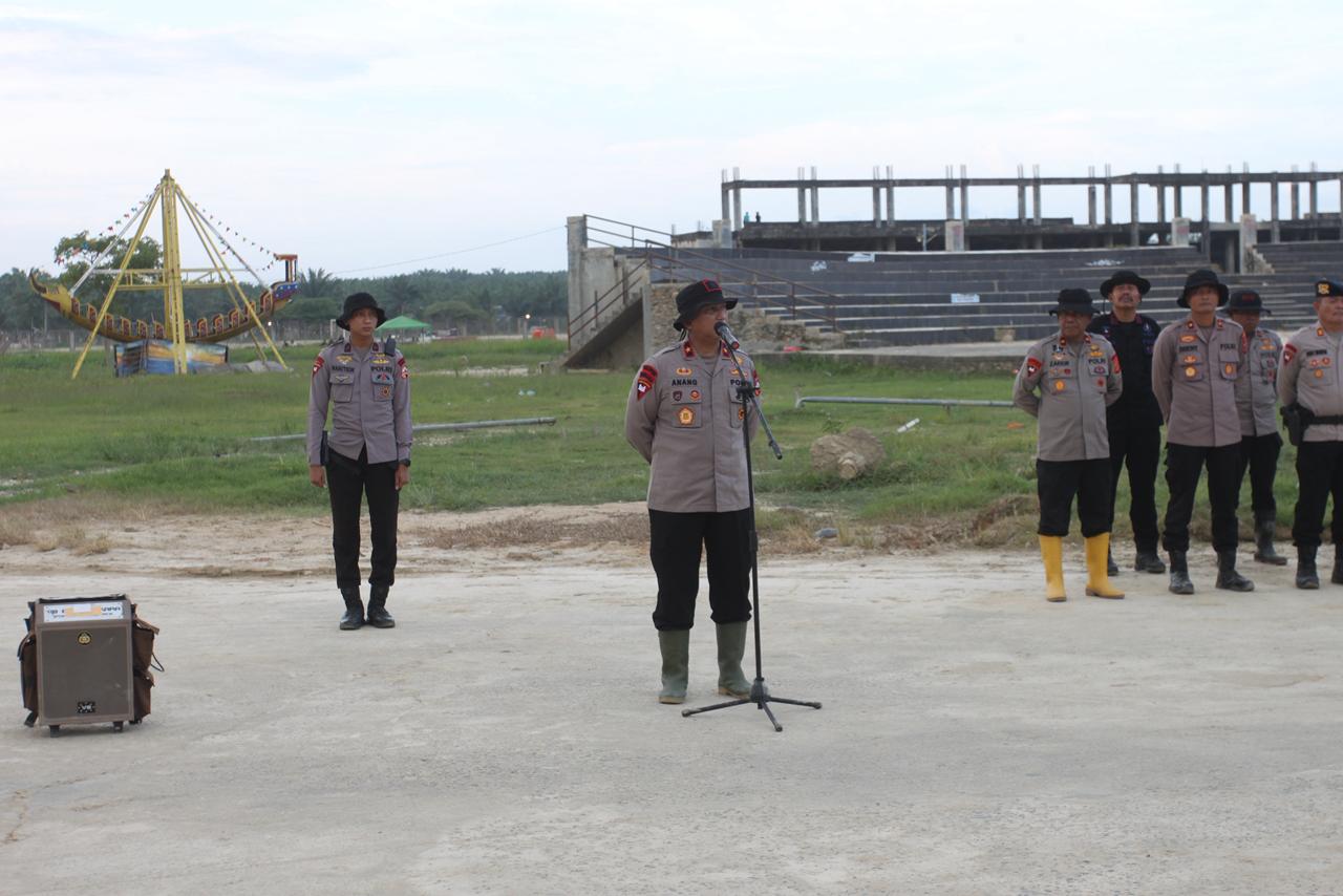 Di hadapan ratusan personel, Anang membuka arahannya dengan ungkapan terima kasih. Ia menyebut pengabdian Brimob di Aceh Tamiang bukan sekadar tugas negara, melainkan panggilan kemanusiaan.