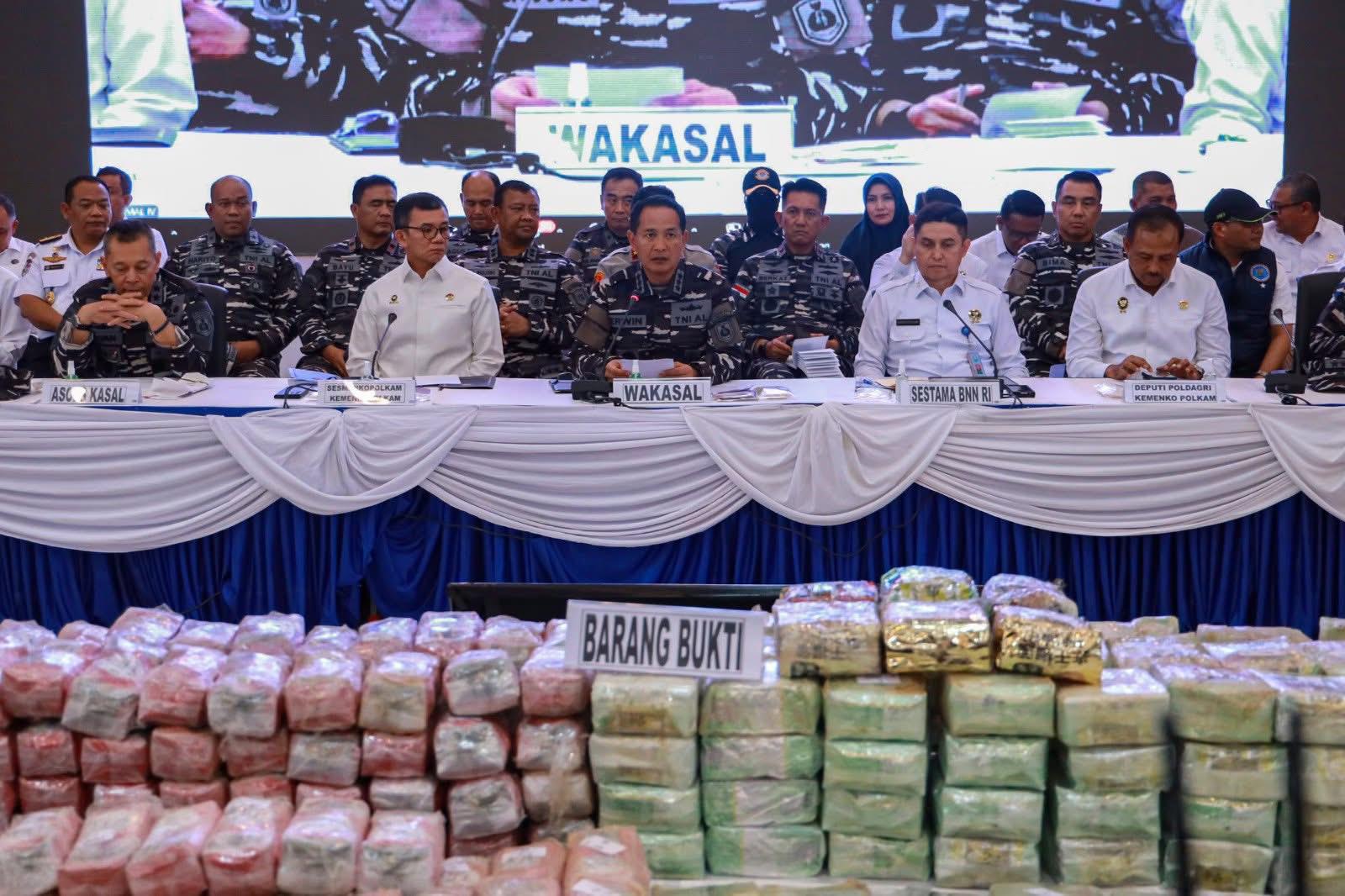 “Ini merupakan wujud nyata dari sinergi antara TNI AL dengan BNN, BIN, DJBC, Polri, Kejaksaan, dan Pengadilan Negeri, yang telah membuahkan hasil dalam menjaga perairan Indonesia dari ancaman kejahatan transnasional, khususnya penyelundupan narkoba,” tutur Wakasal.