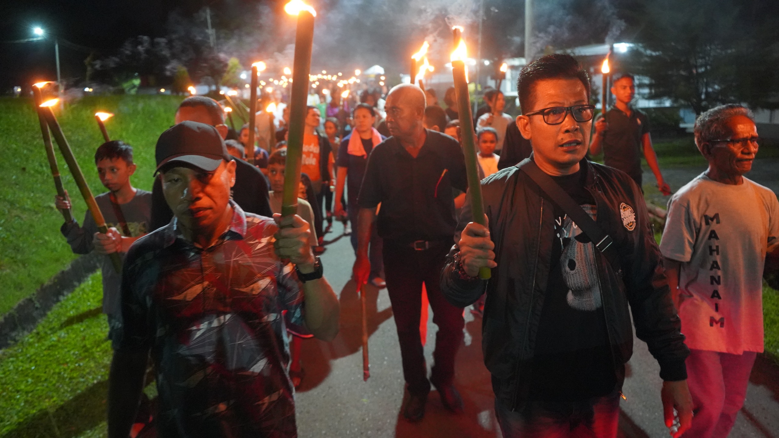 Rangkaian kegiatan kemudian dilanjutkan dengan jalan obor yang dilaksanakan pada Minggu pukul 02.30 WIT mengelilingi kesatriaan Kodaeral lX Halong, Kota Ambon.