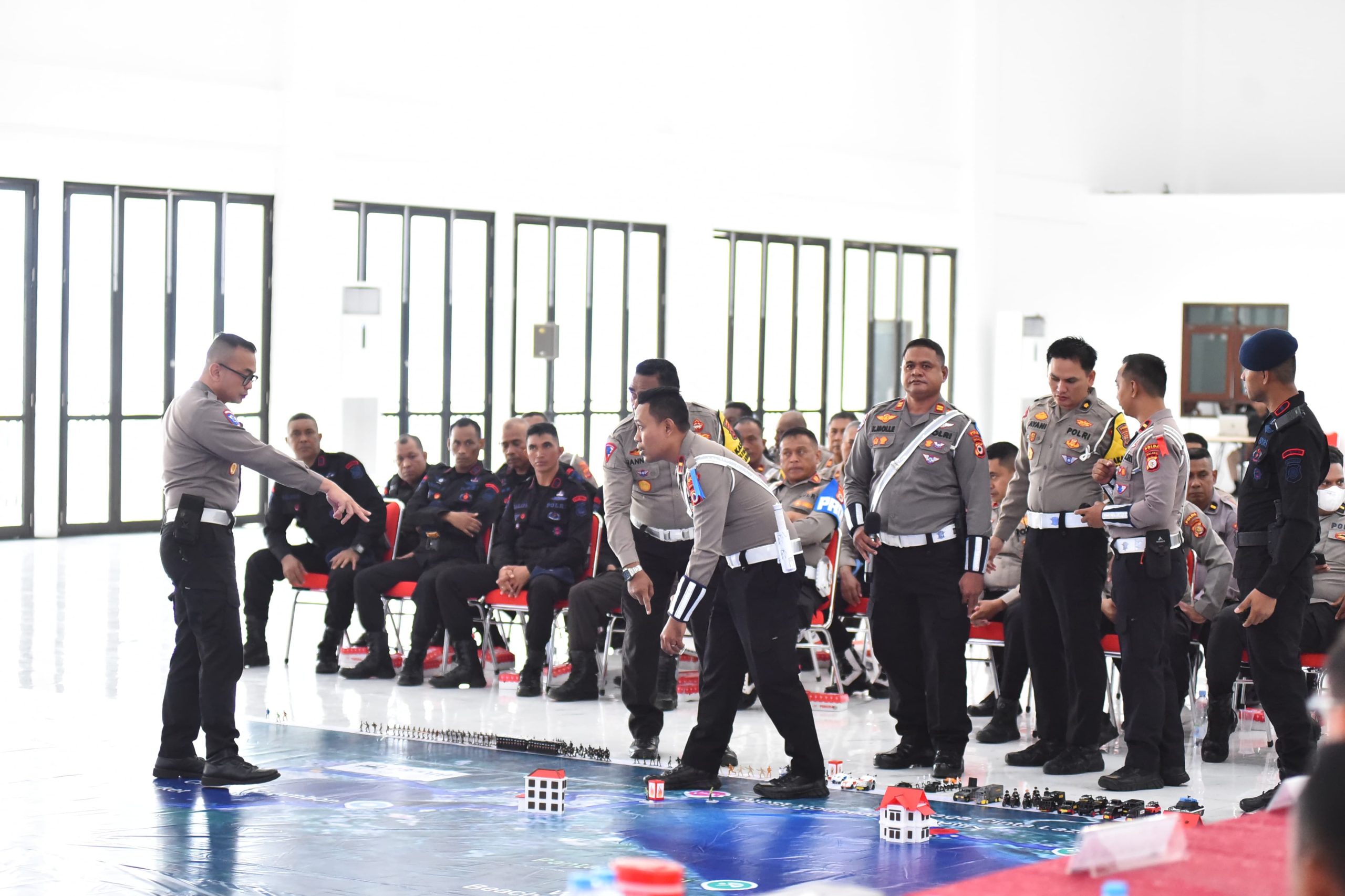 Ambon.Kabarsulsel.lndonesia.com.Menjelang pelaksanaan debat perdana calon gubernur dan wakil gubernur Maluku, Kepolisian Daerah Maluku menggelar Tactical Floor Game (TFG), atau simulasi taktis operasional pengamanan.