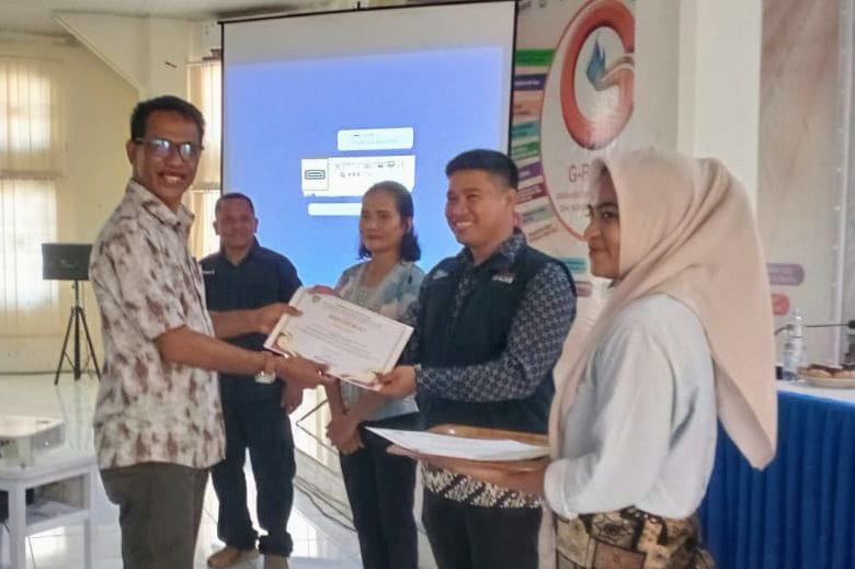 Pada kesempatan itu, Nuhuyanan sempat menyerahkan piagam penghargaan pada peserta workshop secara simbolis oleh Kepala Dinas dan Kepala SKB Sugeng H. Batyanan S.Pd.