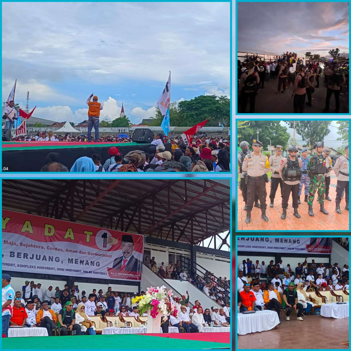 Stadion Maren Langgur penuh dengan semarak dukungan. Baliho besar, bendera partai, dan kendaraan pendukung menghiasi lokasi kampanye. Acara juga dimeriahkan dengan hiburan rakyat yang semakin meningkatkan antusiasme para pendukung.