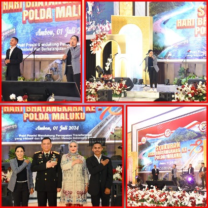 Ambon, Kabarsulsel-lndonesia.com | Puncak acara syukuran peringatan HUT ke-78 Bhayangkara yang digelar Polda Maluku di Gedung Plaza Presisi Manise, dimeriahkan oleh musisi dan seniman lokal dari provinsi Maluku.