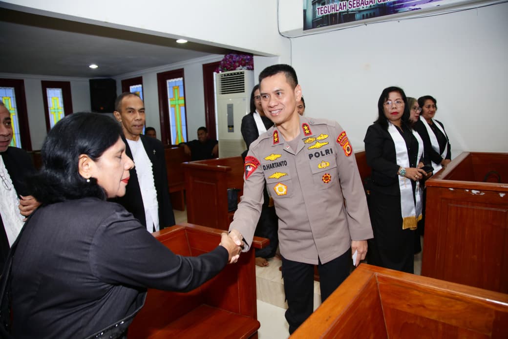 “Saya datang hari ini untuk beribadah bersama dan berkenalan dengan basudara semua. Maluku adalah tanah yang indah dan kaya, maka saya merasa terhormat sekaligus bersyukur bisa ditugaskan di sini. Saya ingin kita bersama-sama menjaga tanah ini agar tetap aman dan damai,” ujar Irjen Pol. Dadang Hartanto.