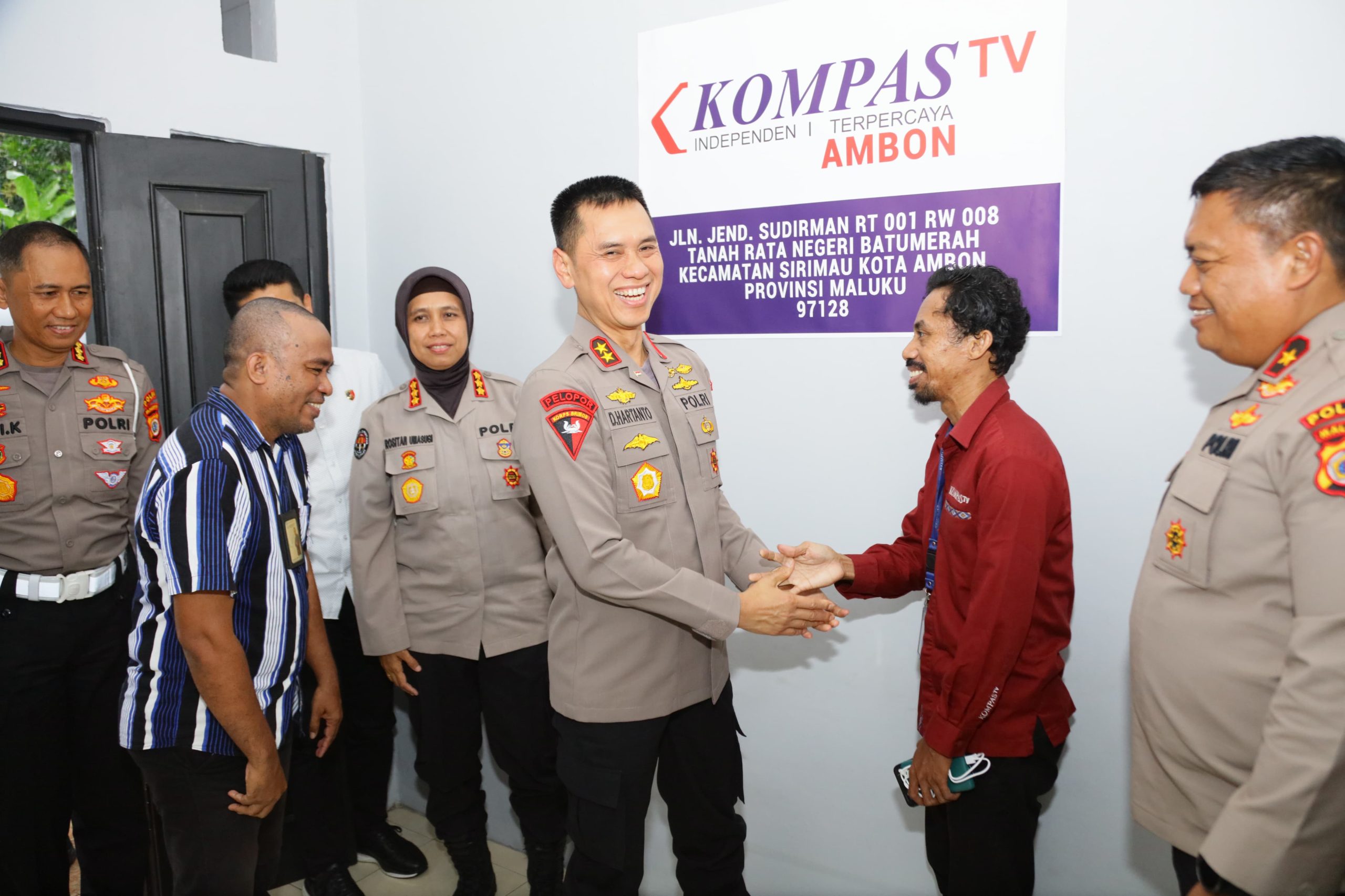Kapolda bersama Wakapolda Maluku hadir bersama para pejabat utama, yaitu Direktur Krimum, Direktur Lantas, Direktur Krimsus, serta Kabid Humas Polda Maluku. Kehadiran rombongan disambut baik oleh Koordinator Biro Kompas TV Ambon dan para wartawan Kompas.