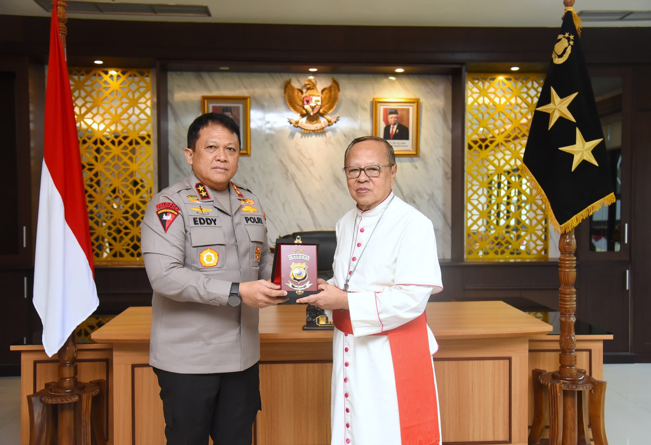 Ambon.Kabarsulsel.lndonesia.com.Kapolda Maluku Irjen Pol. Drs. Eddy Sumitro Tambunan, M.Si menerima kunjungan silaturahmi dari Uskup Pastoral Khusus TNI dan Polri, Ignatius Kardinal Suharyo.