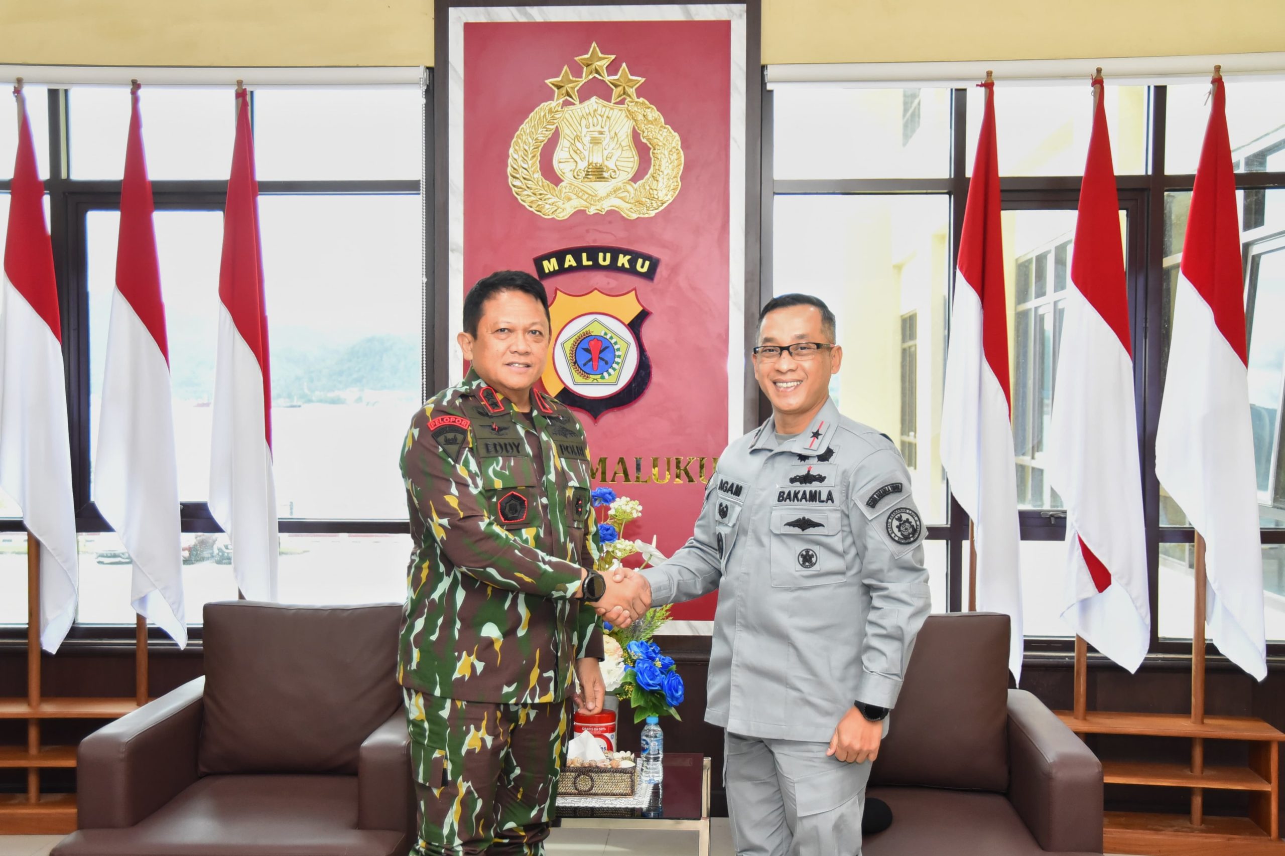Ambon.Kabarsulsel.lndonesia.com.Kapolda Maluku, Irjen Pol. Drs. Eddy Sumitro Tambunan, M.Si, menerima kunjungan silaturahmi dari Kepala Kantor Bakamla Zona Maritim Timur, Laksma Bakamla Agam Endrasmoro.