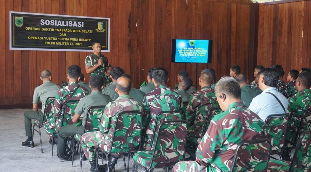 Di hadapan para prajurit, Kapten CPM Prasetyo Budhi Setiawan, S.Psi., Dansubdenpom XVIII/1-2 CPM, berbicara dengan nada tenang namun tegas. Sosialisasi Operasi Penegakan Ketertiban (Gaktib) dan Operasi Yustisi Tahun Anggaran 2026 yang digelar oleh Korem 182/Jazira Onim bukan sekadar agenda rutin tahunan. Ia adalah pengingat bahwa seragam yang dikenakan setiap hari menyimpan konsekuensi moral yang tak ringan.