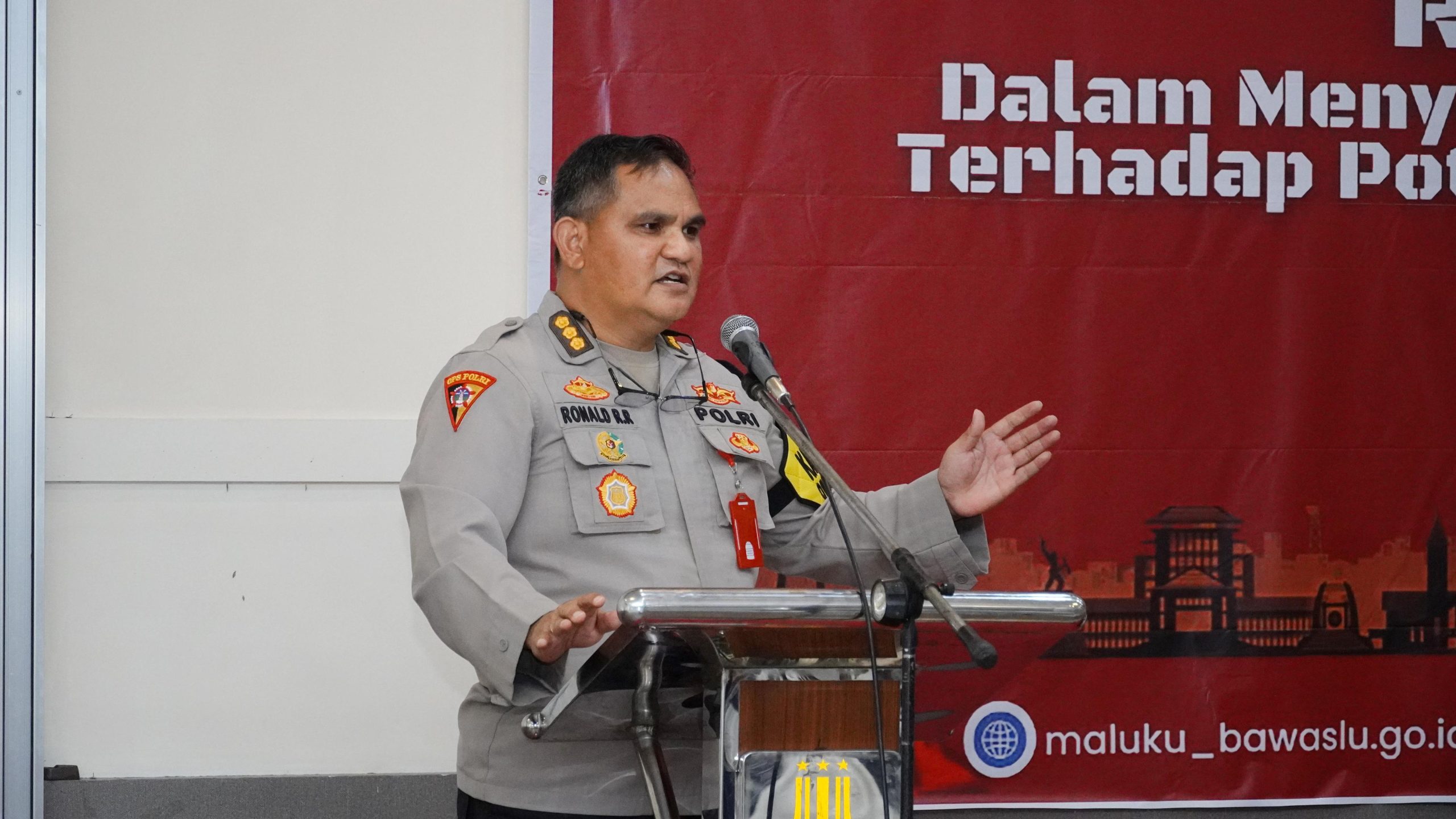 Ambon.Kabarsulsel.lndonesia.com.Karo Ops Polda Maluku, Kombes Pol Ronald Refli Rumondor S.IK memberikan materi saat digelarnya rapat koordinasi yang dilaksanakan Bawaslu provinsi Maluku, di Manise Hotel, Kota Ambon, Rabu (16/10/2024).
