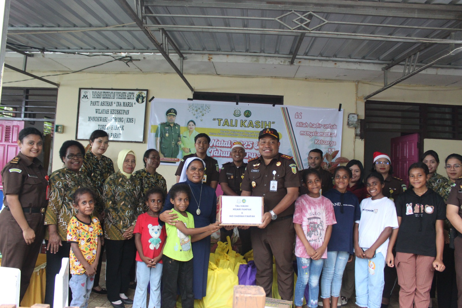 Kepala Kejaksaan Negeri Fakfak saat menyerahkan Bantuan Tali Kasih “Natal Tahun 2025 dan Tahun Baru 2026” ke Panti Asuhan Ina Marina | Foto Istimewah