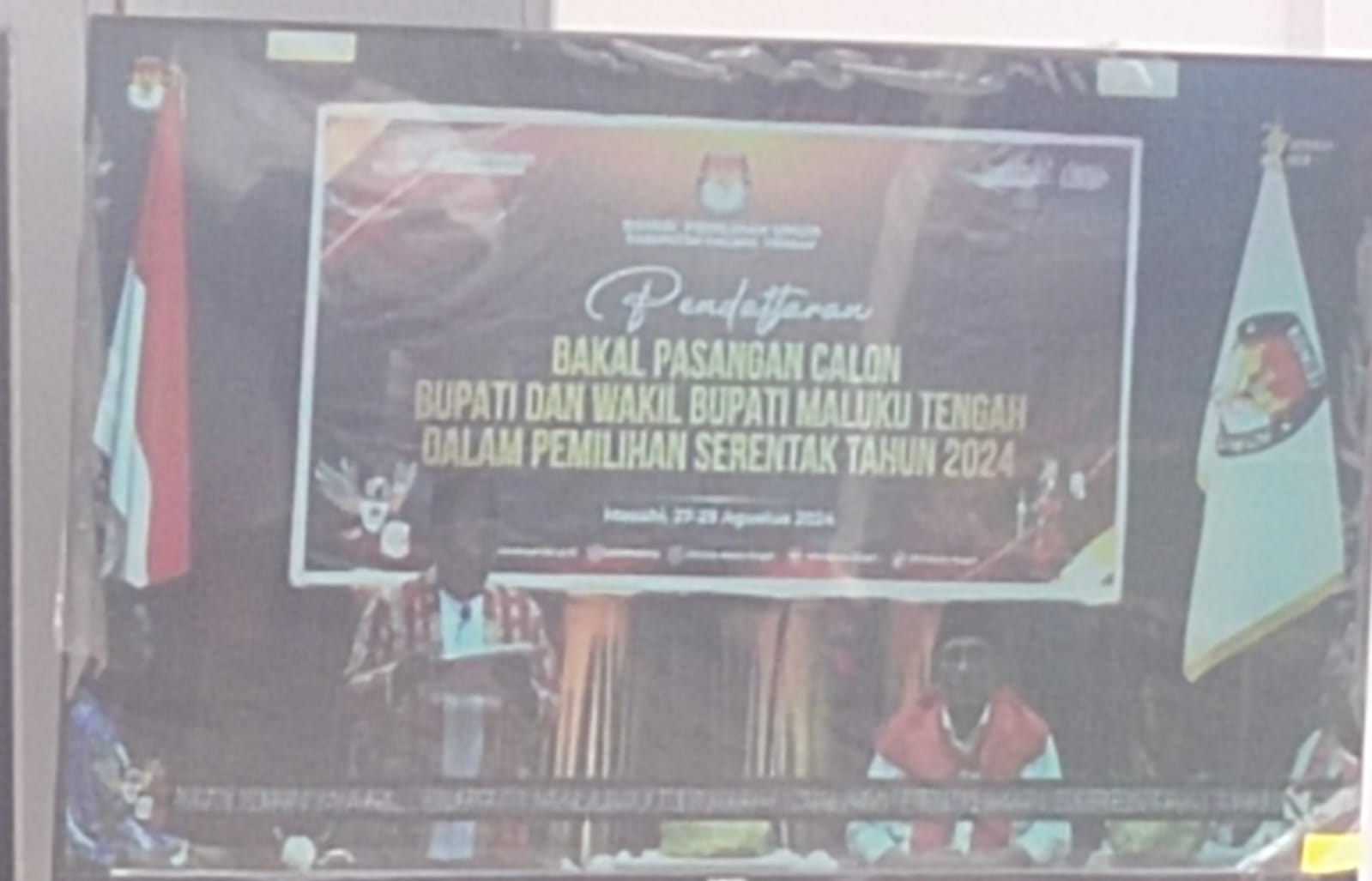 Ambon.Kabarsulsel.Indonesia.Com.KPU Kabupaten Maluku Tengah menerima pendaftaran Bakal Calon Bupati dan Wakil Bupati Zulkarnain Awat Awal dan Mario Lawalatta sebagai Calon Bupati dan Wakil Bupati Maluku Tengah periode 2024-2029, di kantor KPU Masohi, Kamis 29/8/2024.