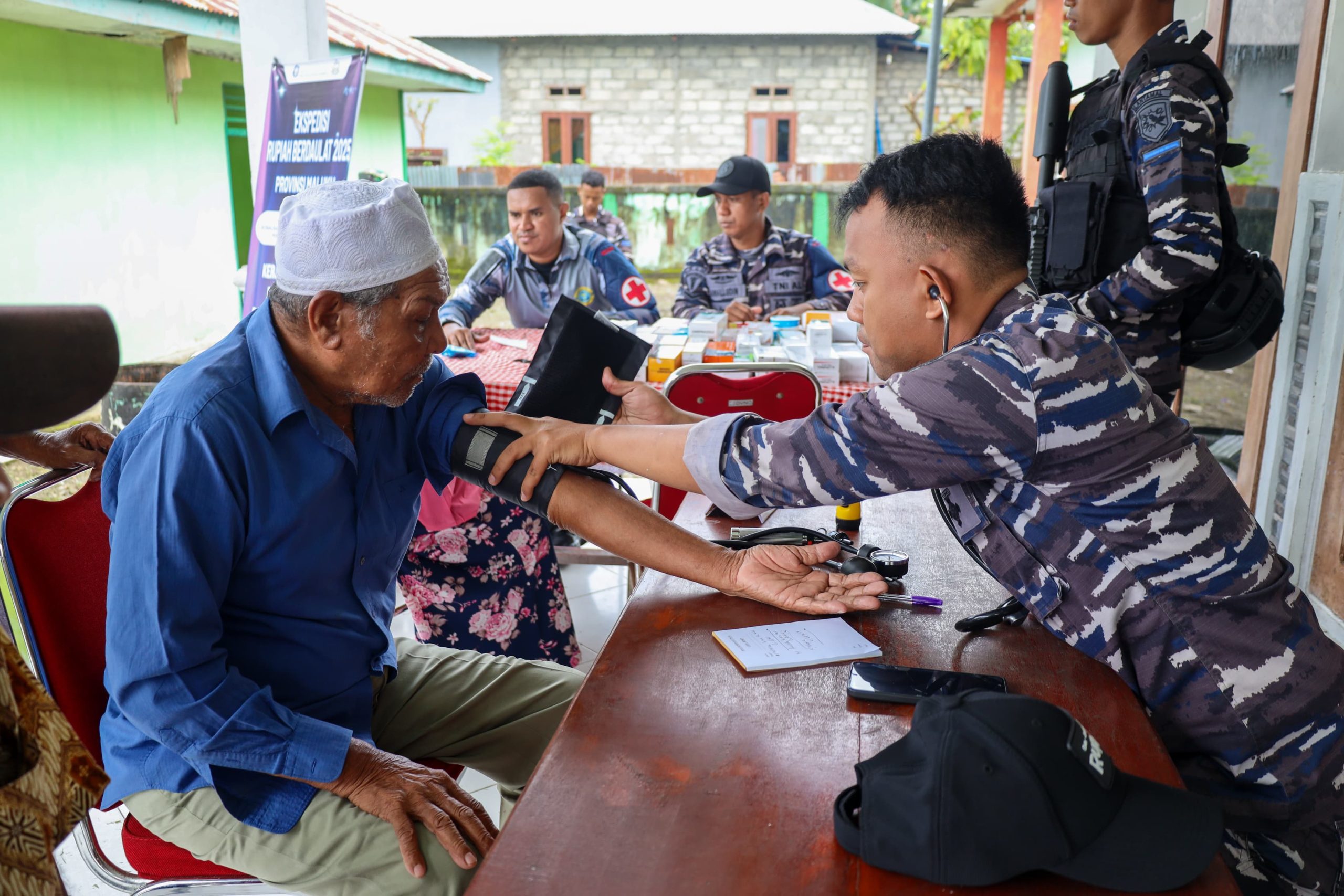 Ambon,Kabarsulsel-lndonesia.com. Komando Daerah Angkatan Laut IX Ambon (Kodaeral IX Ambon). Komandan Komando Daerah Angkatan Laut (Dankodaeral) Laksamana Muda TNI Hanarko Djodi Pamungkas, S.H.,. TNI Angkatan Laut melalui Tim Kesehatan Kodaeral IX Ambon bersama Bank Indonesia melaksanakan kegiatan Bakti Kesehatan Gratis dan Sosialisasi Cinta, Bangga, dan Paham Rupiah yang dipusatkan di Aula Kantor PKK Kecamatan Siwalalat, Kabupaten Seram Bagian Timur, Provinsi Maluku. Jumat (26/09/2025).